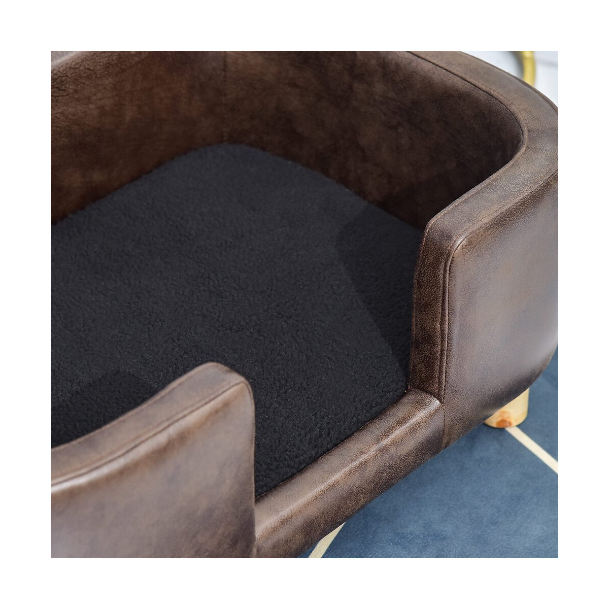 Canapé Chien Lit Pour Chien Chat Avec Rebord Coussin Moelleux Pieds Bois Massif Dim. 74 X 48 X 31 Cm Revêtement Synthétique
