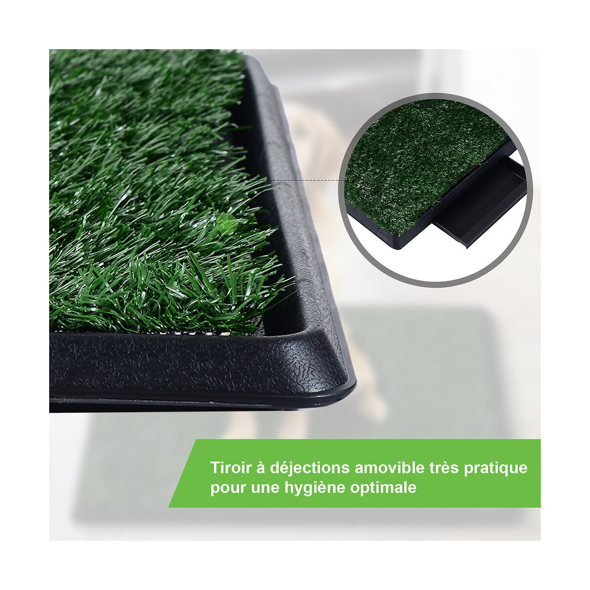 Litière Gazon Synthétique Chiens Toilettes Portables À Pelouse Tiroir À Déjection 63l X 51l X 6h Cm Noir Vert