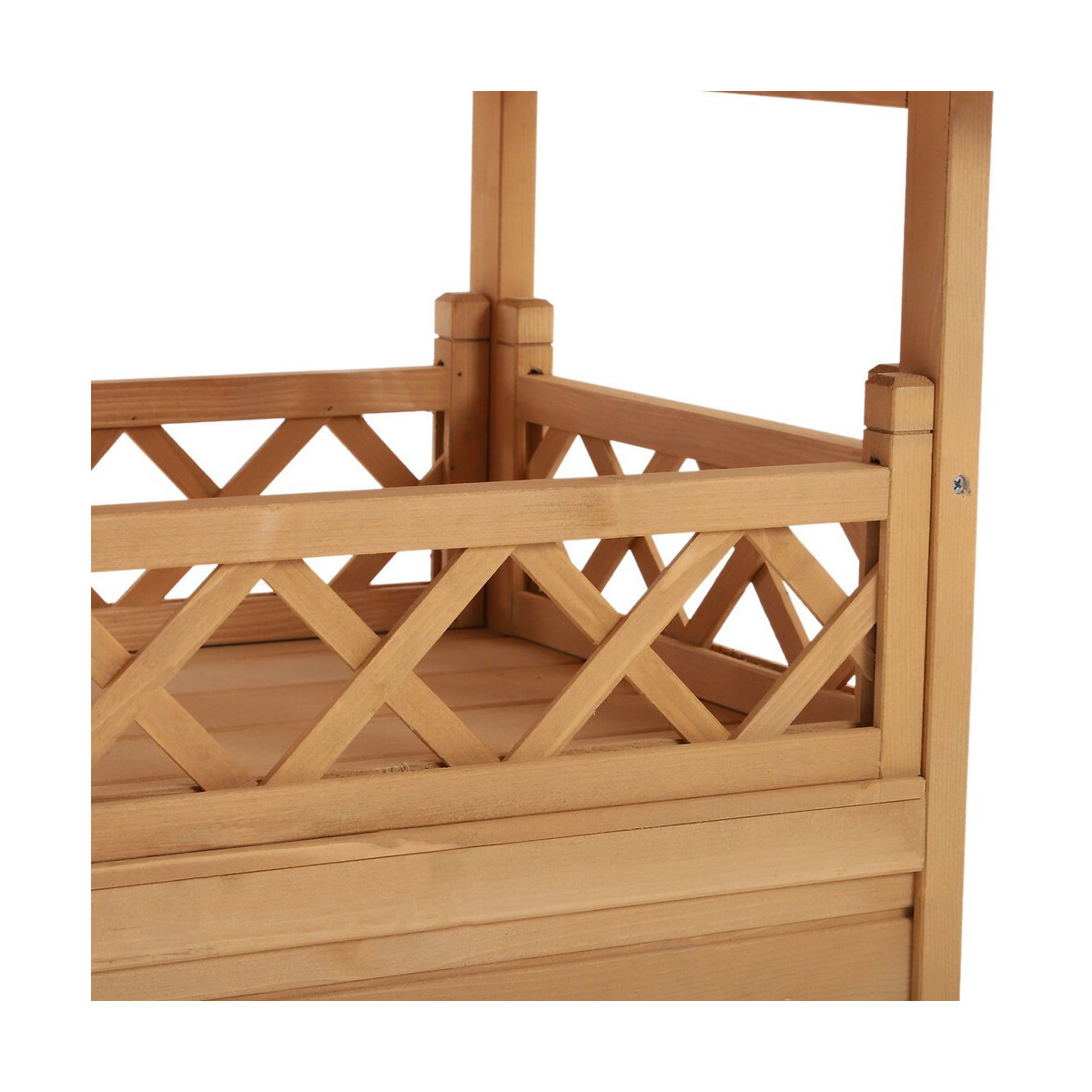 Cette superbe niche en bois massif de pin sur pied permettra à votre chien de s'abriter de la pluie et du vent. Son toit bitûmé imperméable, sa structure en bois massif de pin pré-huilé, et sa conception sur pieds permettront à votre toutou d'être confortablement installé au sec par n'importe quelle condition météorologique ! Caractéristiques : - Maison lodge idéale pour créer un petit nid douillet extérieur à votre animal - Atout charme supplémentaire de votre jardin - Conception, fabrication originale et haut de gamme - Terrasse aménagée et entourée d'une barrière pour la sécurité de votre chien ou chat - Toit bitumé étanche coloris vert : permet à votre animal de s'aérer au sec par tous les temps - Structure en bois massif de pin robuste pré-huilé - Escalier latéral à 2 marches pour faciliter l'accès de votre chien ou chat à la terrasse - 2 niveaux pour que votre animal s'amuse, joue ou se repose au choix et à volonté ! - Possibilité d'installation en intérieur et extèrieur - Facile à installer grâce au manuel d'assemblage illustré fourni Spécifications : - Couleur : bois massif de pin pré-huilé, vert - Matériau : bois massif de pin, bitume - Dim. totales : 77L x 50l x 73H cm - Hauteur de la barrière en terrasse : 15 cm - Dim. escalier : 35L x 19,5l cm - Dim. niche : 50L x 38l x 31H cm - Dim. porte entrée : 15l x 18,2H cm - Dim. toit : 77L x 50l cm - Livraison effectuée en un colis - Réf : D30-076Spécifications techniques