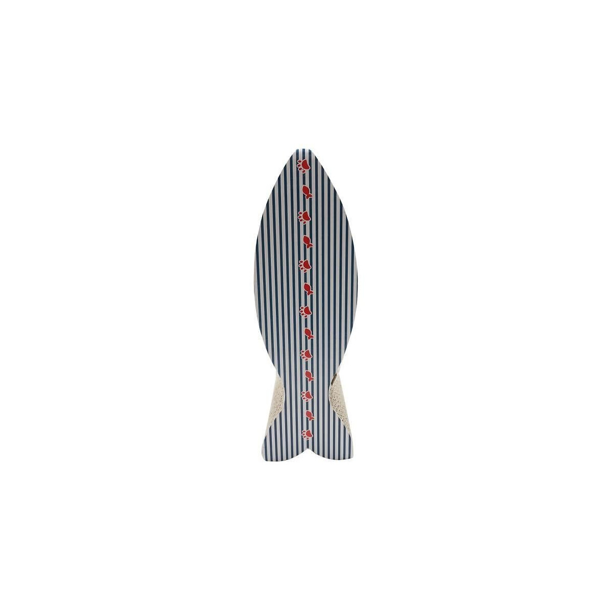"""Griffoir carton AIME en forme de poisson 100% carton recyclé, résistant et peu salissant, idéal pour faire les griffes et ainsi les entretenir et les nettoyer. Décor moderne rayé mariniere bleu. Grand format 35x21x11 cm. Double face."""Spécifications techniques