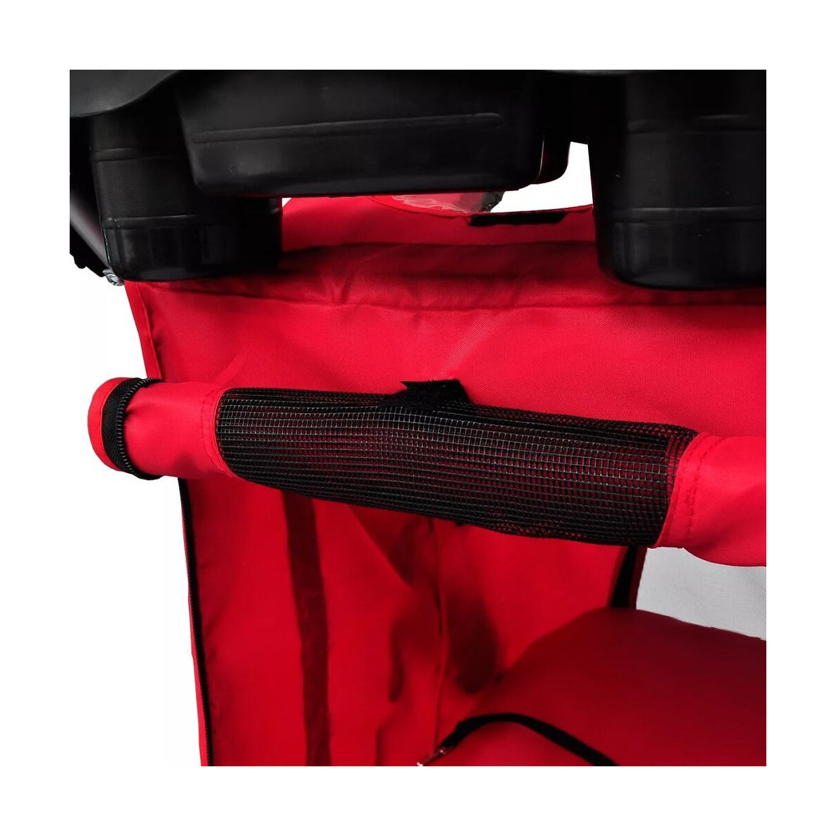 Manipulation facile, la poussette peut être pliée et rangée pour économiser de l'espace. Les deux roues arrière sont équipées de freins, roues avant très souples. Tissu lavable, imperméable et anti-déchirure. Couleur: Rouge Max. Capacité: 15 kg Matériaux: PVC & fibre de polyester Taille totale: 37 x 80 x 99 (L x P x H) Matériel: Polyester: 100%Spécifications techniques