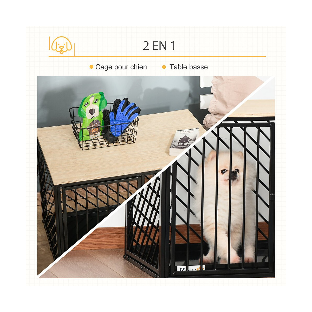 Cage Pour Chien Animaux Dim. 76l X 48l X 53h Cm 2 Portes Verrouillables Métal Panneau Multicouche Chêne Clair