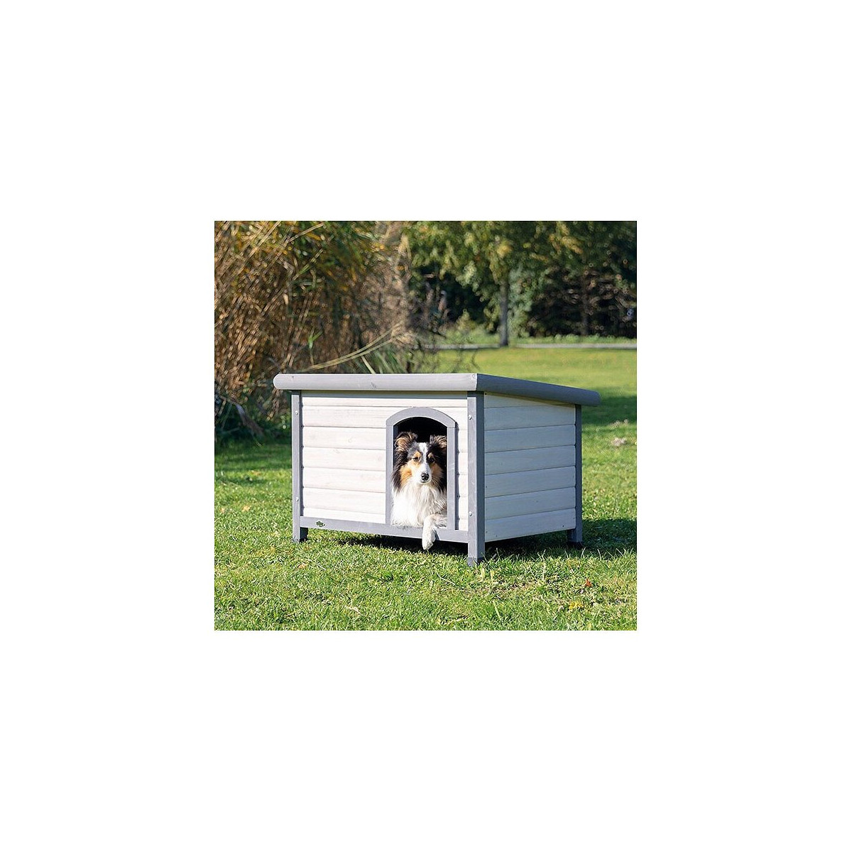 Niche pour chiens Classic toit plat. taille S-M dimension extérieures : 85 x 58 x 60 cm . dimension intérieur: 75 x 43 x 48 cm. couleur grise. toit à charnières. en pin verni, carton bitumé. pieds réglables en hauteur pour une stabilité sécurisée les pieds protègent du froid et des sols humides et assurent une bonne circulation d'air sous la niche • facile à assembler en pin vernis, imperméable. toit recouvert de papier minéral. Important: Lors du choix de la taille de la niche, veillez à ce que celle-ci ne soit pas trop grande car une agréable température ambiante se crée et se maintient grâce à la chaleur corporelle du chien. Si la niche est trop grande, votre chien risque d'avoir rapidement froid. convient pour chien types Berger des Shetland Niche pour chiens Classic toit plat. taille S-M dimension extérieures : 85 x 58 x 60 cm . dimension intérieur: 75 x 43 x 48 cm. couleur grise. toit à charnières. en pin verni, carton bitumé. pieds réglables en hauteur pour une stabilité sécurisée les pieds protègent du froid et des sols humides et assurent une bonne circulation d'air sous la niche • facile à assembler en pin vernis, imperméable. toit recouvert de papier minéral. Important: Lors du choix de la taille de la niche, veillez à ce que celle-ci ne soit pas trop grande car une agréable température ambiante se crée et se maintient grâce à la chaleur corporelle du chien. Si la niche est trop grande, votre chien risque d'avoir rapidement froid. Conseil: Pour un meilleur confort de votre chien, nous vous suggérons d'y mettre une couverture isolante. Notre porte en plastique offre une protection complémentaire contre le vent, la pluie et le froid (vendu séparément: #39571). convient pour chien types Berger des Shetland Photo non contractuelle, car il y a plusieurs vendeurs sur une même fiche produit.Spécifications techniques