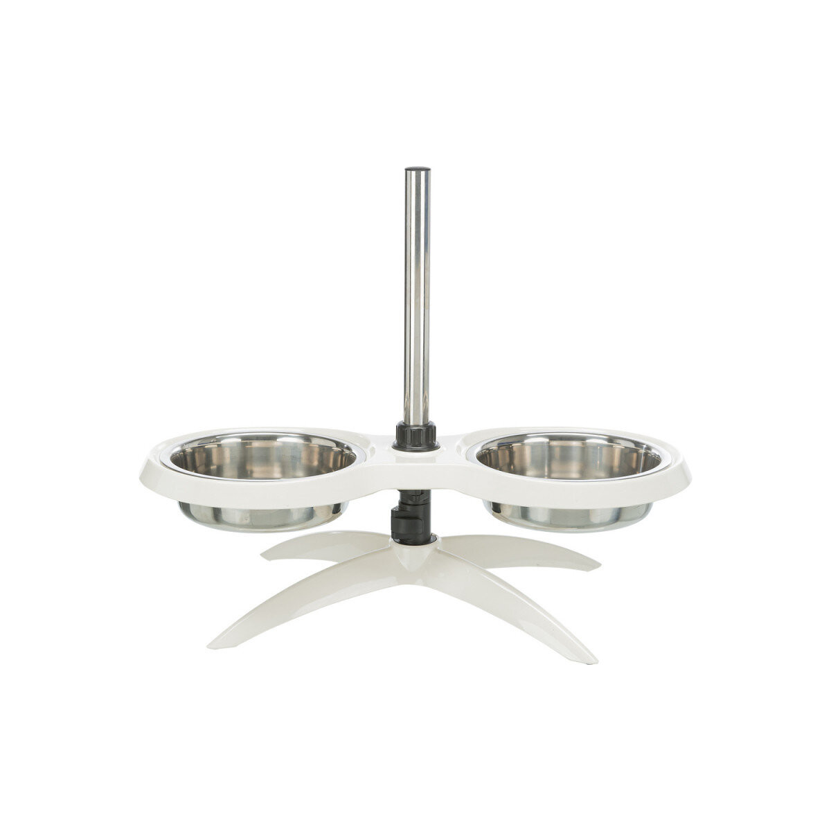 Dimensions: 2 × 1,6 l/ø 21 cm Taille réglable jusqu'à: 54 cm Coloris: blanc Contient: 2 Pcs Bar pour chiens, mélamine/acier inoxydable 2 gamelles en acier inoxydable facile et rapide à fixer avec la pince gamelles réglables en hauteur pieds en caoutchouc anti-dérapants gamelle lavables au lave-vaisselle gamelles de rechange : art 24754/24755 Dimensions: 2 × 1,6 l/ø 21 cm Taille réglable jusqu'à: 54 cm Coloris: blanc Contient: 2 Pcs Photo non contractuelle, car il y a plusieurs vendeurs sur une même fiche produit.Spécifications techniques
