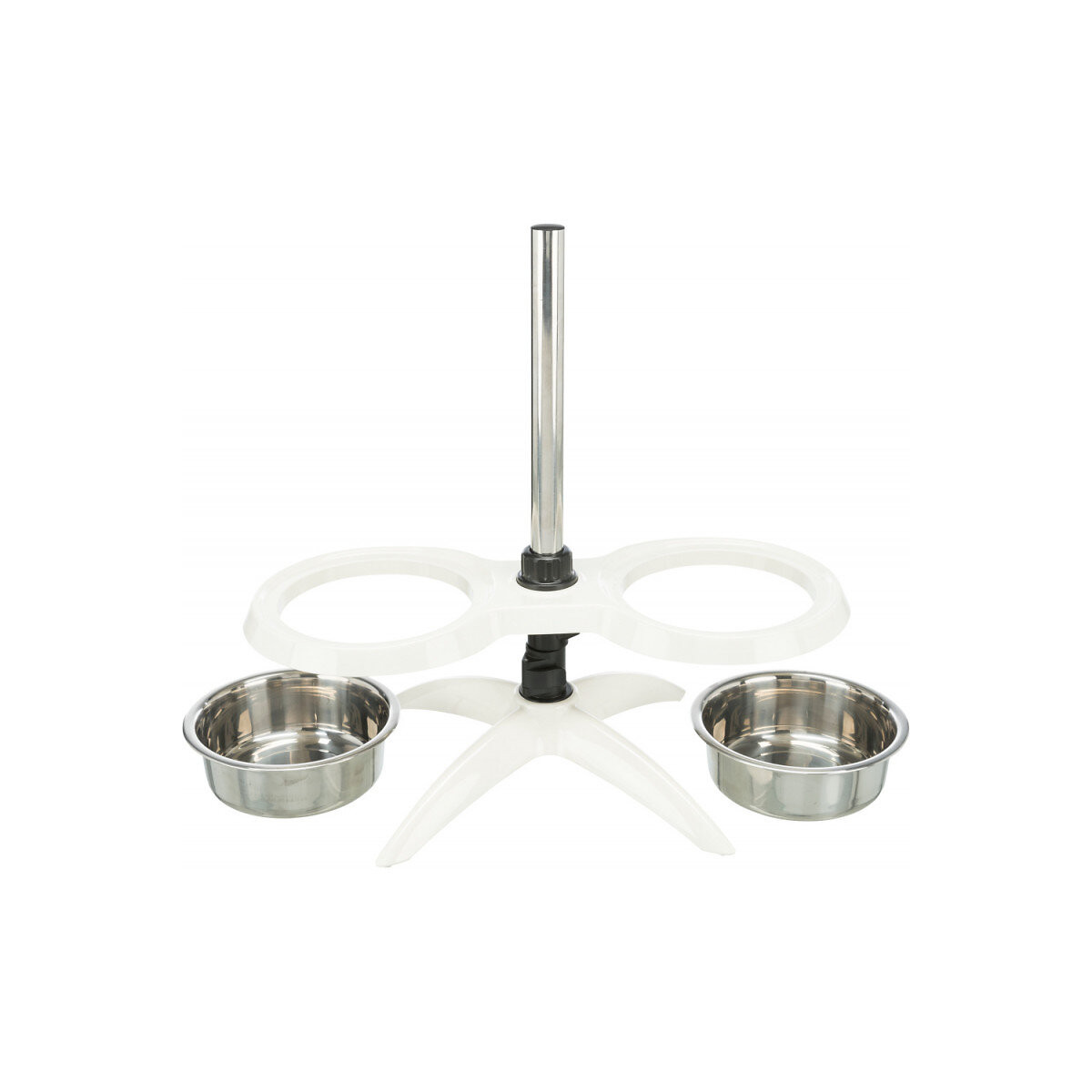Dimensions: 2 × 2,4 l/ø 25 cm Taille réglable jusqu'à: 54 cm Coloris: blanc Contient: 2 Pcs Bar pour chiens, mélamine/acier inoxydable 2 gamelles en acier inoxydable facile et rapide à fixer avec la pince gamelles réglables en hauteur pieds en caoutchouc antidérapants gamelle lavables au lave-vaisselle gamelles de rechange : art 24754/24755 Dimensions: 2 × 2,4 l/ ø 25 cm Taille réglable jusqu'à: 54 cm Coloris: blanc Photo non contractuelle, car il y a plusieurs vendeurs sur une même fiche produit.Spécifications techniques
