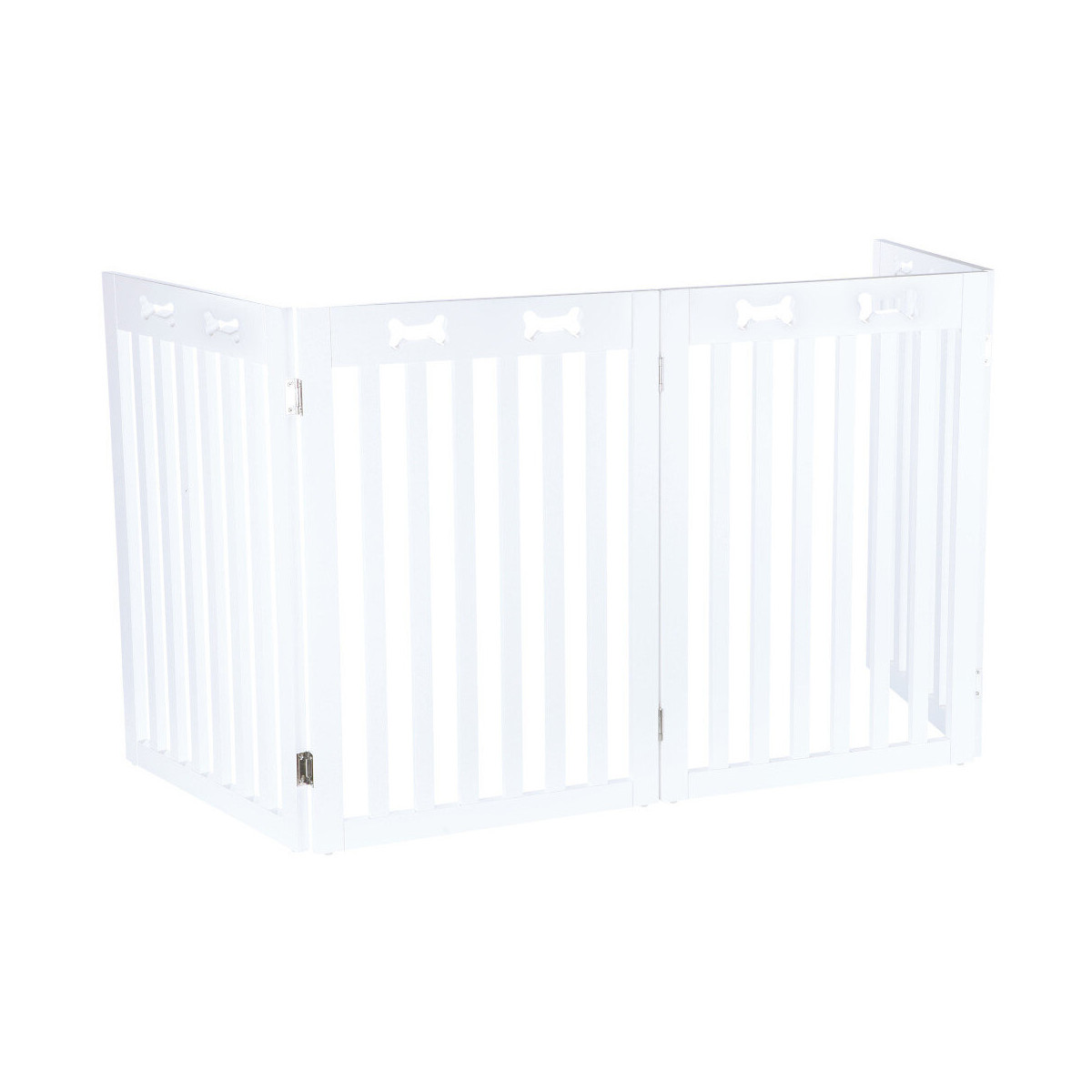 Barrière intérieure pour chiens, 4 parties. Convient aussi aux grands chiens. Pliable. En MDF, vernis. Dimensions: 60-160 × 75 cm. Coloris: blanc. Barrière intérieure pour chiens, 4 parties. Convient aussi aux grands chiens. Pliable. En MDF, vernis. Dimensions: 60-160 × 75 cm. Coloris: blanc. Photo non contractuelle, car il y a plusieurs vendeurs sur une même fiche produit.Spécifications techniques