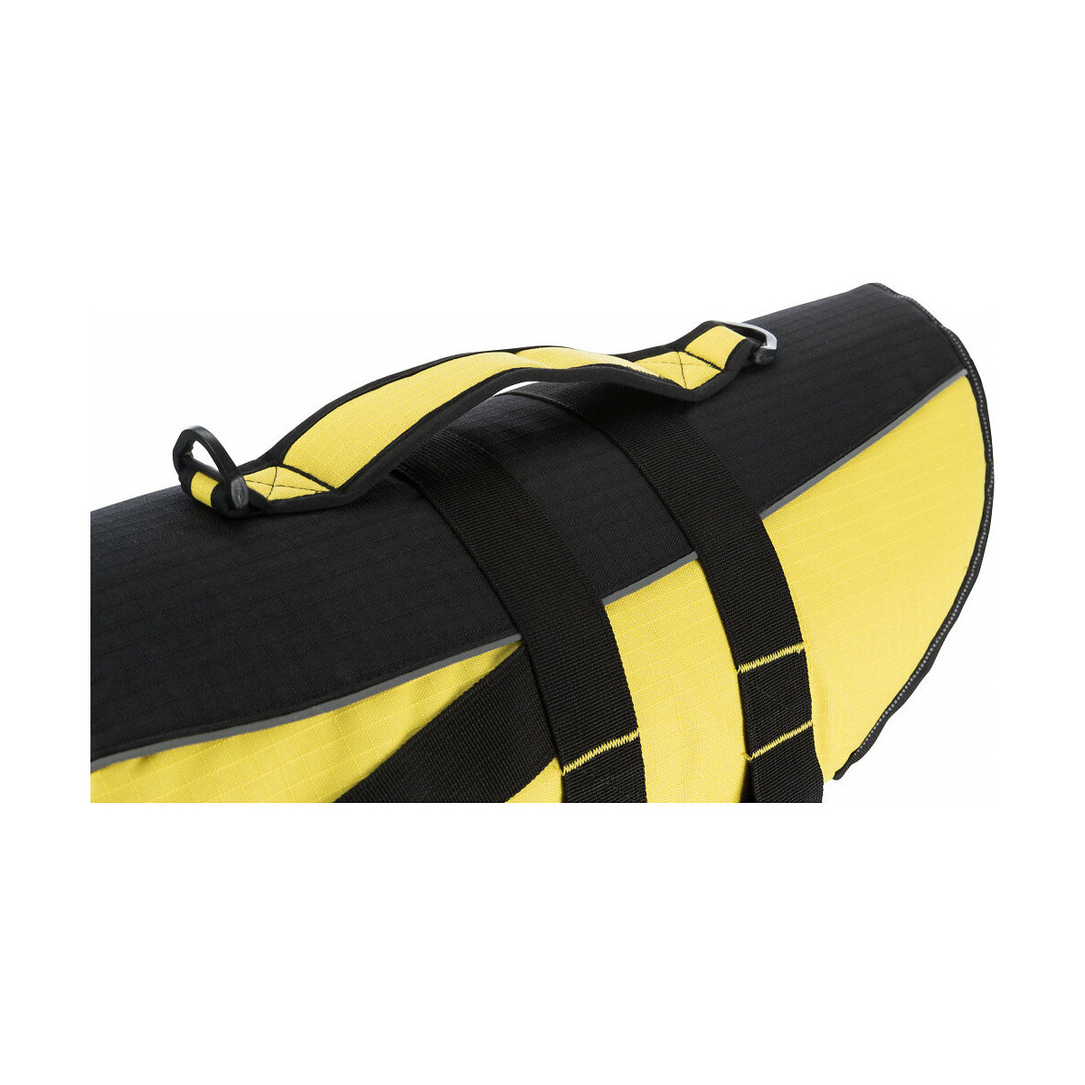 Gilet de sauvetage, Taille XS, pour chien. Pour choisir la bonne taille de gilet de flottaison, il faut se baser sur la capacité du gilet (le poids du chien) et non sur la longueur du dos. Comme les chiens utilisent leur queue pour se diriger dans l'eau, le gilet de flottaison ne doit pas recouvrir la base de la queue. Tour de ventre: 30-50 cm. jusqu'à: 12 kg. Coloris: jaune/noir. Longueur du dos: 28 cm. ne convient pas aux races à pattes courtes (par exemple, les teckels). Gilet de sauvetage, Taille XS, pour chien. Pour choisir la bonne taille de gilet de flottaison, il faut se baser sur la capacité du gilet (le poids du chien) et non sur la longueur du dos. Comme les chiens utilisent leur queue pour se diriger dans l'eau, le gilet de flottaison ne doit pas recouvrir la base de la queue. Tour de ventre: 30-50 cm. jusqu'à: 12 kg. Coloris: jaune/noir. Longueur du dos: 28 cm. ne convient pas aux races à pattes courtes (par exemple, les teckels). sécurité renforcée pour l'entraînement et le jeu dans l'eau et pour les sorties en bateau. maintien ferme grâce aux bandes auto-agrippantes et sangles en nylon avec fermetures à clic, réglable en continu. poignée de sauvetage avec 2 anneaux en D. couleur signal et bandes réfléchissantes, aident à localiser le chien rapidement. confort optimal grâce à la forme anatomique. en polyester . Photo non contractuelle, car il y a plusieurs vendeurs sur une même fiche produit.Spécifications techniques