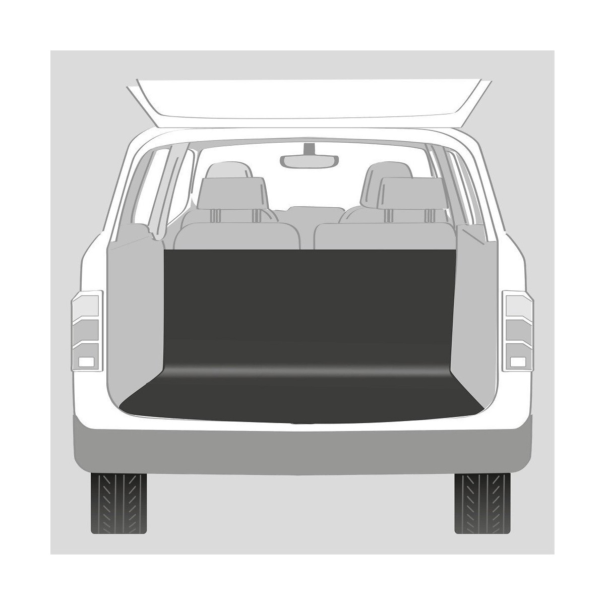 Protège-coffre de voiture Dimensions: 1,20 × 1,50 m Coloris: noir Protège-coffre de voiture en coton/polyester bandes auto-agrippantes anti-dérapantes sur la banquette, empêchent de glisser protège des saletés et des poils facile à installer et à enlever Important: Pour une entière protection contre les accidents, utilisez un harnais de sécurité agrée. Photo non contractuelle, car il y a plusieurs vendeurs sur une même fiche produit.Spécifications techniques
