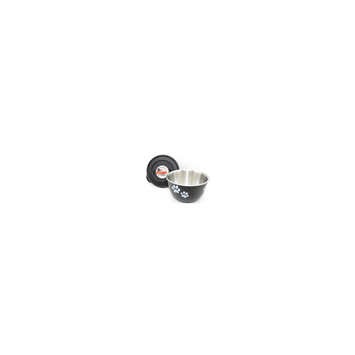 Ecuelle Kena avec couvercle. pour chien dimension: ø12.7 cm. contenance 600 ml. en inox. antidérapant. couleur noir. avec motif pattes et os. Ecuelle Kena avec couvercle. pour chien dimension: ø12.7 cm. contenance 600 ml. en inox. antidérapant. couleur noir. avec motif pattes et os. Photo non contractuelle, car il y a plusieurs vendeurs sur une même fiche produit.Spécifications techniques