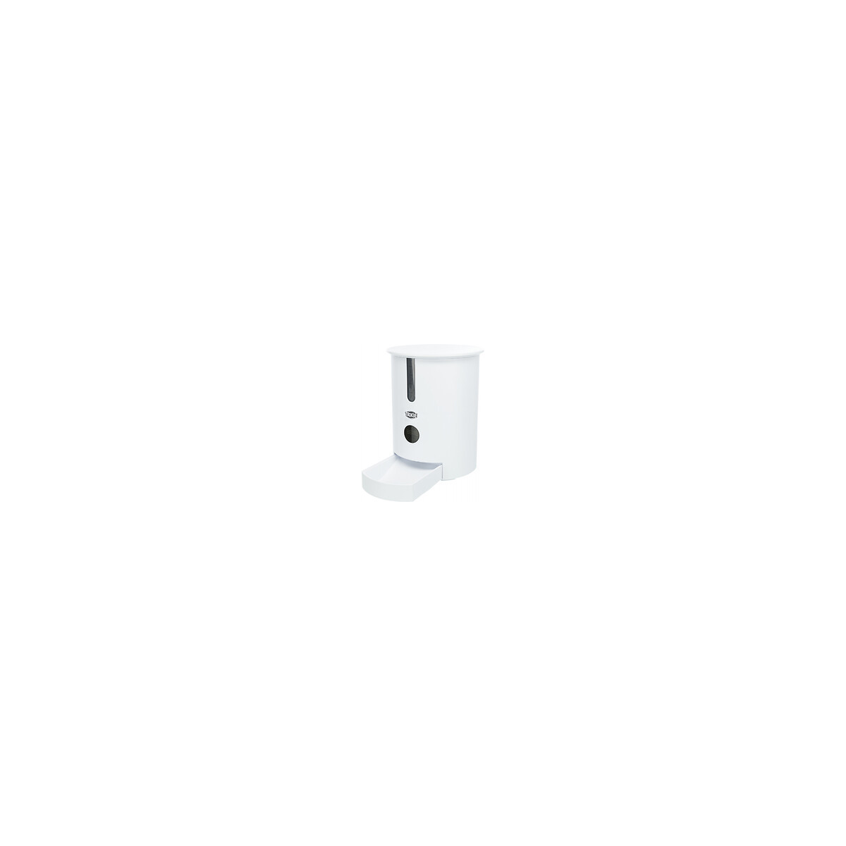 Distributeur automatique de nourriture TX9 Dimensions: 2,8 l/22 × 28 × 22 cm Hauteur: 28 cm Coloris: blanc Distributeur automatique de nourriture TX9 programmation jusqu'à 6 repas par jour pour jusqu'à 2,8 l de nourriture sèche la quantité de nourriture peut être réglée individuellement par repas entre 1 à 8 portions (1 portion = 12 ml) le débit de nourriture est automatiquement répété chaque jour en option, une voix enregistrée peut être déclenchée à lheure des repas. max. ø 15 mm pour les croquettes avec écran tactile et verrou avec graduation pour un meilleur contrôle du niveau de nourriture bol et écuelle amovibles gamelle lavable au lave-vaisselle en plastique Photo non contractuelle, car il y a plusieurs vendeurs sur une même fiche produit.Spécifications techniques