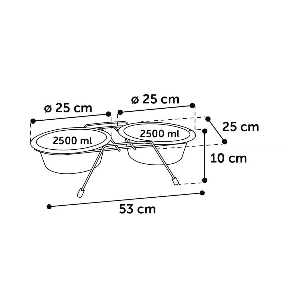 Ecuelle duo ø 25 cm. 12500 ml. avec support Arjun. pour chien. taille L. Gamelle pour la nourriture et l'eau Support Arjun Duo Dinner Rouge Noir. - Acier inoxydable. Dimensions: longueur 53 cm x largeur 25 cm x hauteur 10 cm. Diamètre extérieur des bols: ∅ 25 cm. Contenu: 2 x 2500 ml. lavable en machine. pied du support Arjun anti dérapant. Ecuelle duo ø 25 cm. 12500 ml. avec support Arjun. pour chien. taille L. Gamelle pour la nourriture et l'eau Support Arjun Duo Dinner Rouge Noir. - Acier inoxydable. Dimensions: longueur 53 cm x largeur 25 cm x hauteur 10 cm. Diamètre extérieur des bols: ∅ 25 cm. Contenu: 2 x 2500 ml. lavable en machine. pied du support Arjun anti dérapant. vidéo 360° Photo non contractuelle, car il y a plusieurs vendeurs sur une même fiche produit.Spécifications techniques