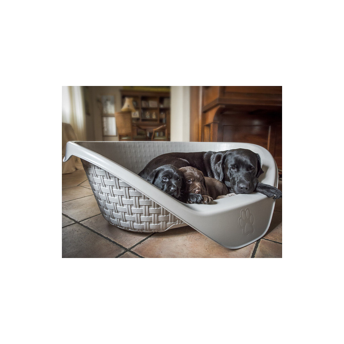 Panier Aspect Rotin 75 X 55 X 26 Cm H Pour Chien Gamme Nido. Couleur Gris Clair - Bama Pet - Fl-517631