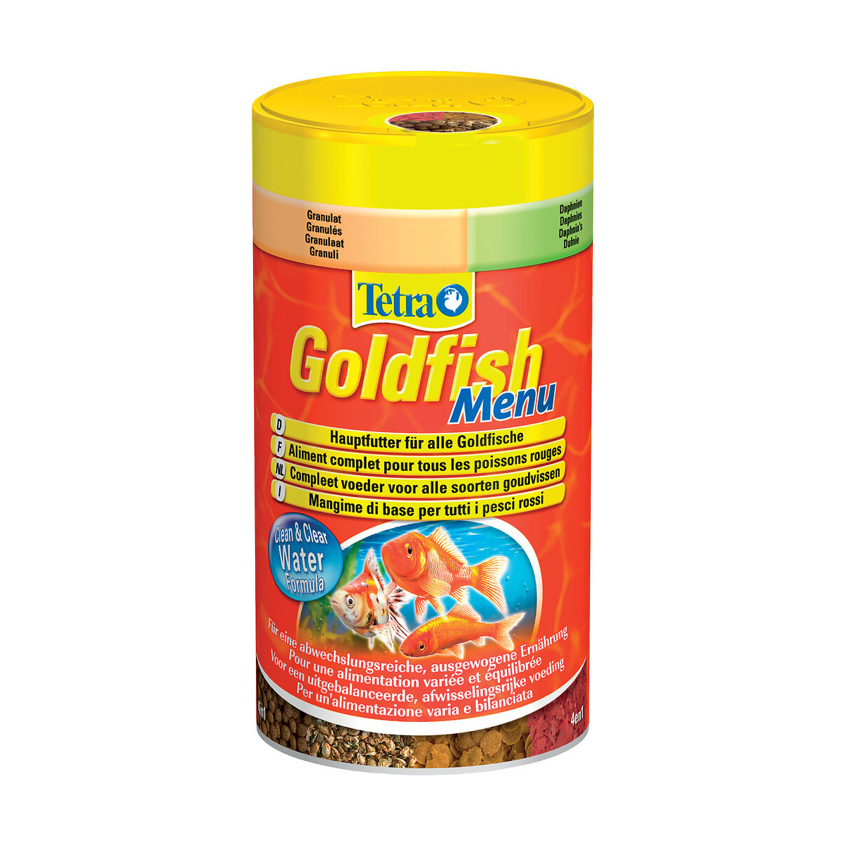 Découvrez un menu complet 4 en 1 pour tous vos poissons rouges et d'eau froide. Ainsi vous pouvez variez l'alimentation de vos compagnons ! Ce menu 4 en 1 répond aux différents besoins de vos poissons : les crisps avec leur haute valeur nutritionnelle, les sticks, activateurs naturels de couleurs, les flocons, biologiquement équilibrés et les savoureuses Daphnies. Il permet de varier le menu des poissons à chaque repas. Contenance : 250 ml.