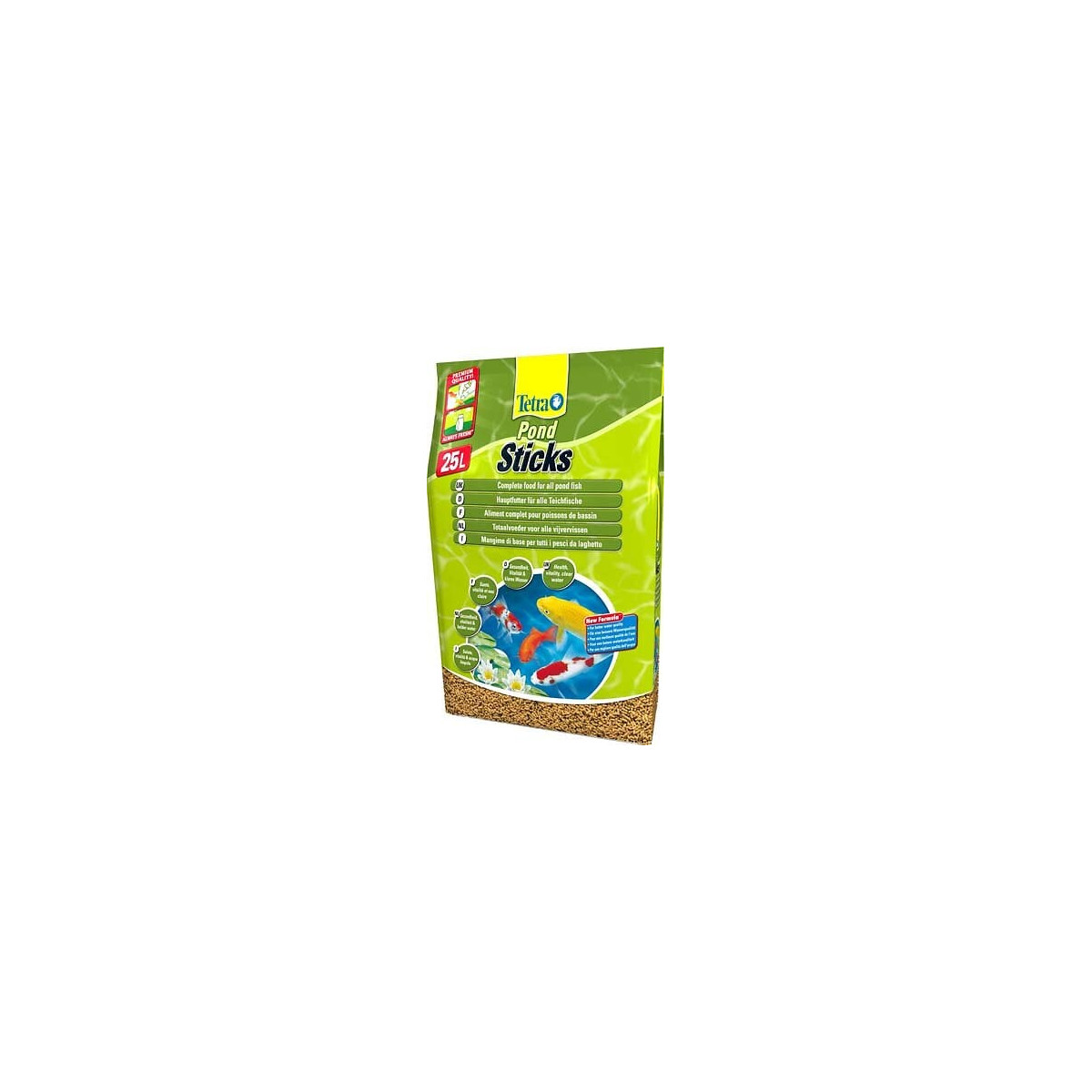 Cet aliment complet se présente sous forme de sticks et convient à tous les poissons de bassin pour garantir une alimentation saine et biologiquement équilibrée à vos poissons. Tetra Pond Sticks aide à renforcer vos poissons grâce à sa formule enrichie en vitamine C stabilisée et à tous les nutriments, oligo-éléments et vitamines essentiels. Cet aliment facilite également la digestion et favorise la resistance de vos poissons aux maladies. Ces sticks flottent à la surface de l'eau et se ramollissent jusqu'à complète absorption par les poissons. La pollution du bassin se trouve limitée car l'eau n'est pas troublée par les restes de nourriture et le filtre est moins sollicité.