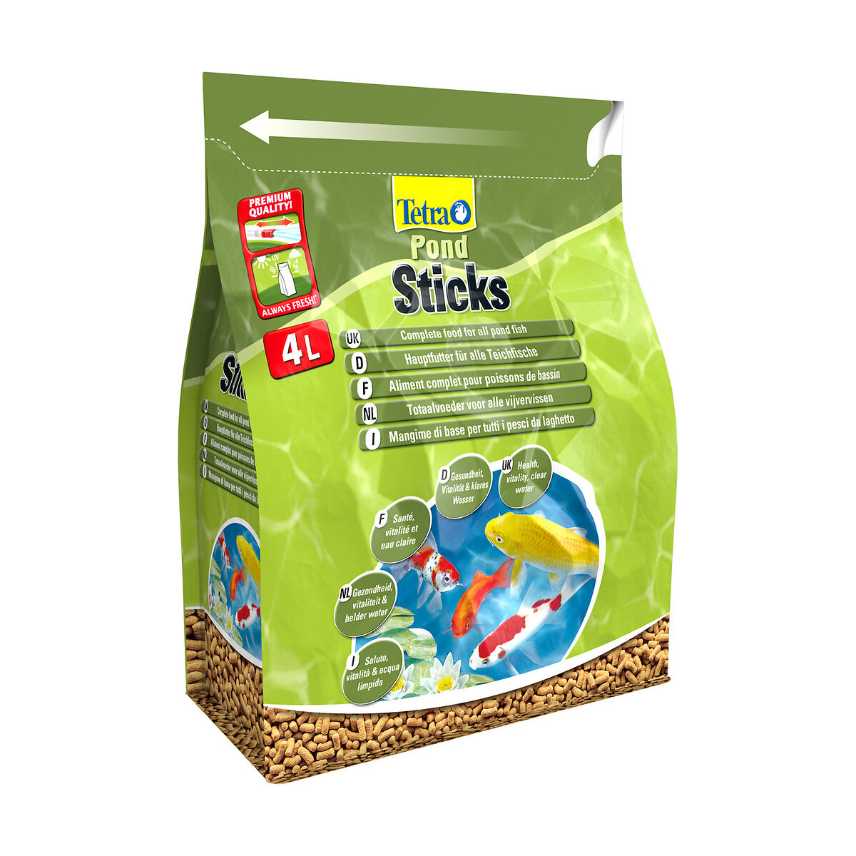 Cet aliment complet se présente sous forme de sticks et convient à tous les poissons de bassin pour garantir une alimentation saine et biologiquement équilibrée à vos poissons. Tetra Pond Sticks aide à renforcer vos poissons grâce à sa formule enrichie en vitamine C stabilisée et à tous les nutriments, oligo-éléments et vitamines essentiels. Cet aliment facilite également la digestion et favorise la résistance de vos poissons aux maladies. Ces sticks flottent à la surface de l'eau et se ramollissent jusqu'à complète absorption par les poissons. La pollution du bassin se trouve limitée car l'eau n'est pas troublée par les restes de nourriture et le filtre est moins sollicité. Contenance : 4 L.
