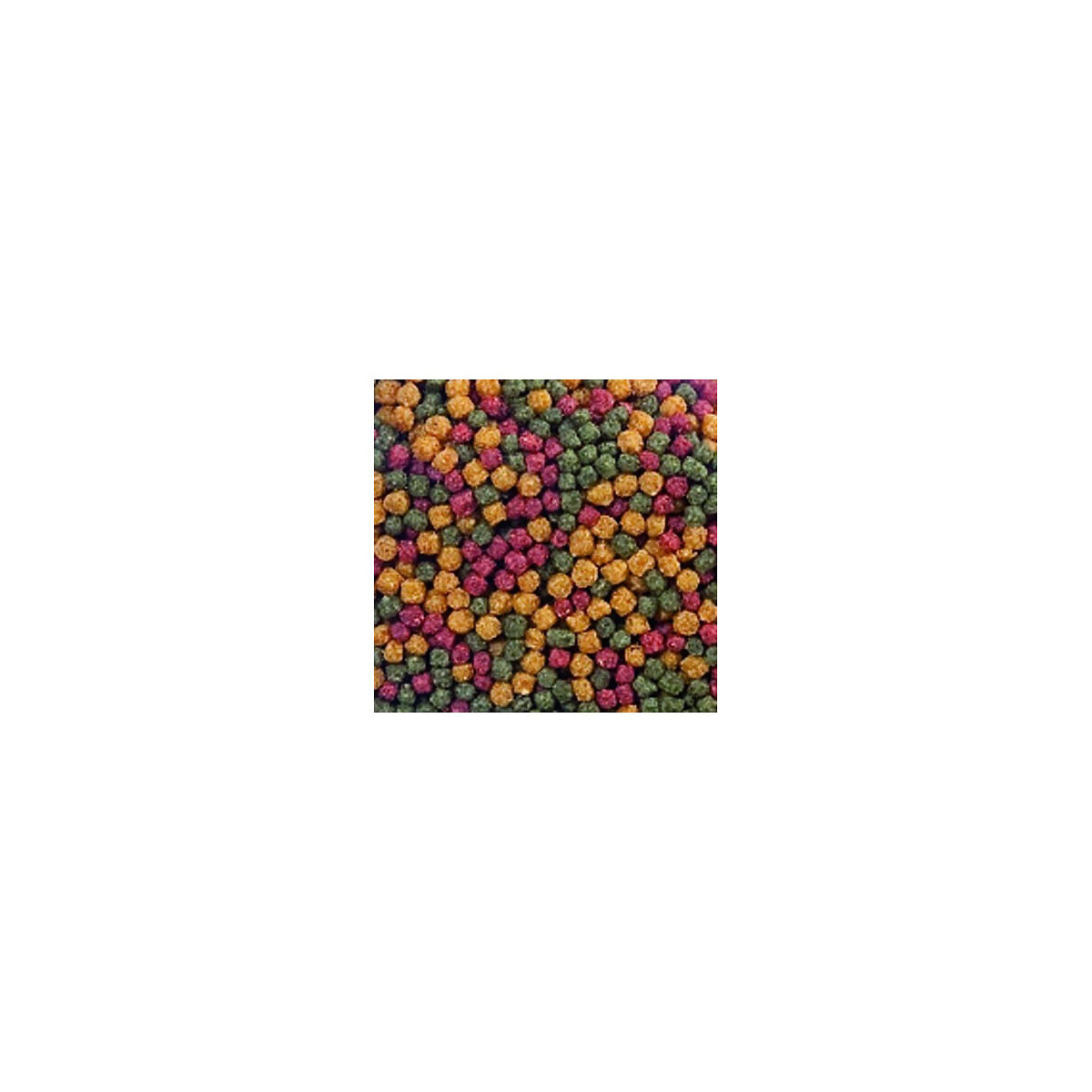Nourriture poissons d'étang granules. Aliment complet pour poissons d'étang. Instructions de nourrir: quand la température de l'eau est en dessus de 10°C, nourrir plusieurs fois par jour. Ne donner pas plus que les poissons peuvent manger en quelques minutes. Enlever ce qui reste dans le bassin. Arrêter de nourrir quand la température de l'eau baisse en dessous de 10°C. Composition: tourteau de soja ; farine de blé ; blé ; farine de volaille; farine de poisson; gluten de blé ; concentré protéique de luzerne ; gluten de maïs ; lécithine ; phosphate mono-calcique ; poivron ; spiruline ; germes de blé ; dérivé de levure. Nourriture poissons d'étang GRANULES Aliment complet pour poissons d'étang. Instructions de nourrir: quand la température de l'eau est en dessus de 10°C, nourrir plusieurs fois par jour. Ne donner pas plus que les poissons peuvent manger en quelques minutes. Enlever ce qui reste dans le bassin. Arrêter de nourrir quand la température de l'eau baisse en dessous de 10°C. Composition: tourteau de soja ; farine de blé ; blé ; farine de volaille; farine de poisson; gluten de blé ; concentré protéique de luzerne ; gluten de maïs ; lécithine ; phosphate mono-calcique ; poivron ; spiruline ; germes de blé ; dérivé de levure vitamines: Vit.A: 10.600 UI/kg, Vit.C: 250 mg/kg, Vit.E: 200 mg/kg, Vit.D3: 2.820 UI/kg Contient de la farine de poissons et des protéines traitées de non-ruminants, ne peut pas être utilisé pour les animaux domestiques d'agriculture, à l'exception des animaux d' aquaculture et d'animaux de fourrure. Photo non contractuelle, car il y a plusieurs vendeurs sur une même fiche produit.