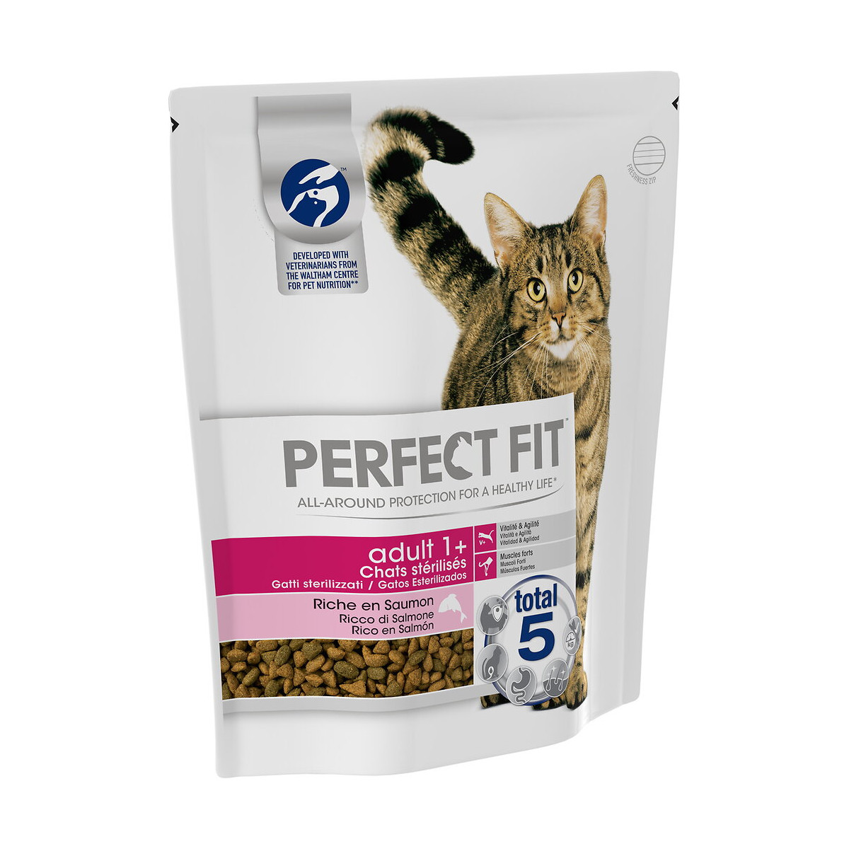 Aliment complet pour chats adultes stérilisés - Riche en Saumon. Mises au point avec les vétérinaires et les nutritionnistes du centre de WALTHAM™, les croquettes Perfect Fit™ combinent 5 bénéfices qui répondent à 5 des besoins les plus communs à tous les chats, quel que soit leur âge ou leur style de vie, dans sa formule unique Perfect Fit™ Total 5 : Défenses naturelles fortes, Fonctionnement urinaire sain, Digestion saine, Peau et pelage sains, Maintien du poids de forme &, condition physique. La nourriture pour chat Perfect Fit™ Adult 1+ Chats Stérilisés répond aux besoins spécifiques des chats adultes (1 an et plus) stérilisés en contribuant à maintenir leur vitalité ainsi qu’une bonne hygiène bucco-dentaire et à développer des muscles forts. Et pour un plaisir garanti, nos produits contiennent des protéines de haute qualité! • Haute nutrition complète pour chats adultes stérilisés • Croquette croquante riche en saumon et sans colorant artificiel ajouté • 5 bénéfices qui répondent à des besoins communs à tous les chats • 3 bénéfices additionnels qui répondent à des besoins spécifiques d'un chat adulte stérilisé • Développé avec les nutritionnistes et les vétérinaires du Centre de WALTHAM™ pour la nutrition des animaux de compagnie, afin de garantir une nutrition de pointe, complète et équilibréeSpécifications techniques