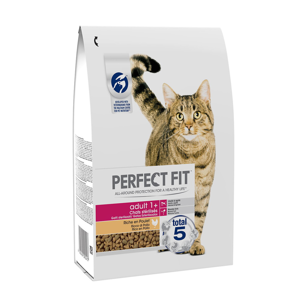 Aliment complet pour chats adultes stérilisés - Riche en Poulet. Mises au point avec les vétérinaires et les nutritionnistes du centre de WALTHAM™, les croquettes Perfect Fit™ combinent 5 bénéfices qui répondent à 5 des besoins les plus communs à tous les chats, quel que soit leur âge ou leur style de vie, dans sa formule unique Perfect Fit™ Total 5 : Défenses naturelles fortes, Fonctionnement urinaire sain, Digestion saine, Peau et pelage sains, Maintien du poids de forme &, condition physique. La nourriture pour chat Perfect Fit™ Adult 1+ Chats Stérilisés répond aux besoins spécifiques des chats adultes (1 an et plus) stérilisés pour lui assurer une nutrition adaptée en contribuant à maintenir leur vitalité ainsi qu’une bonne hygiène bucco-dentaire et à développer des muscles forts. Et pour un plaisir garanti, nos produits contiennent des protéines de haute qualité!Spécifications techniques