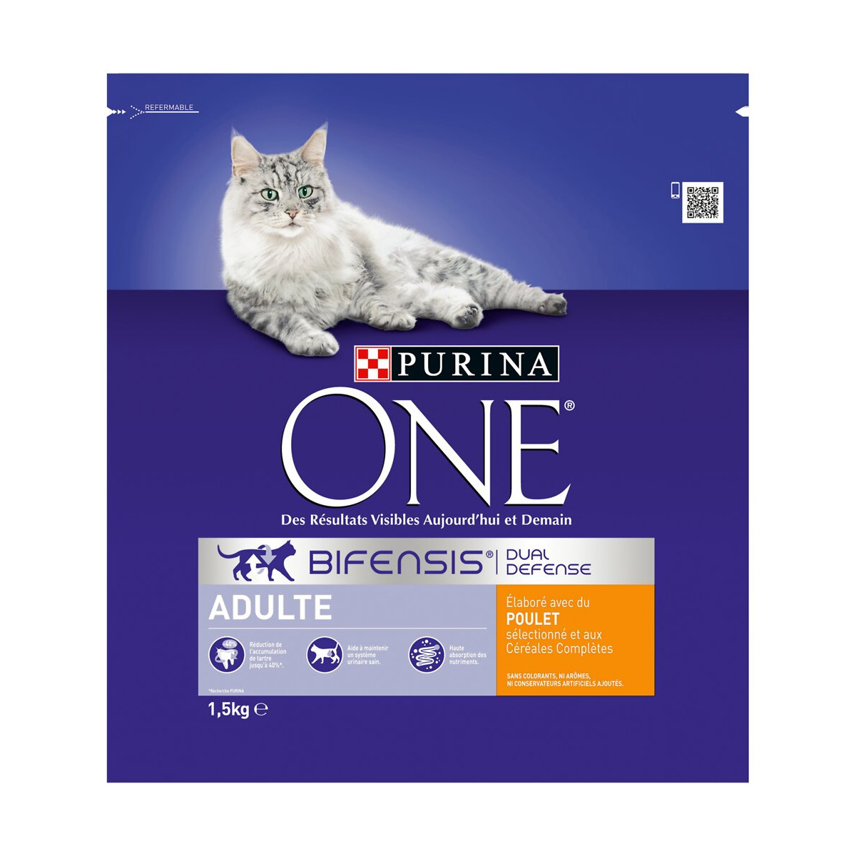 Croquettes chat PURINA ONE Chat Adulte - au Poulet et Céréales Complètes - 1,5 KG - Croquettes pour chat adulte PURINA ONE Adulte est spécialement formulé pour les chats âgés de plus de 1 an. Réduction de l'accumulation de tartre jusqu'à 40 %*. *Recherche PURINA Système urinaire sain favorisé par un taux équilibré en minéraux.Spécifications techniques