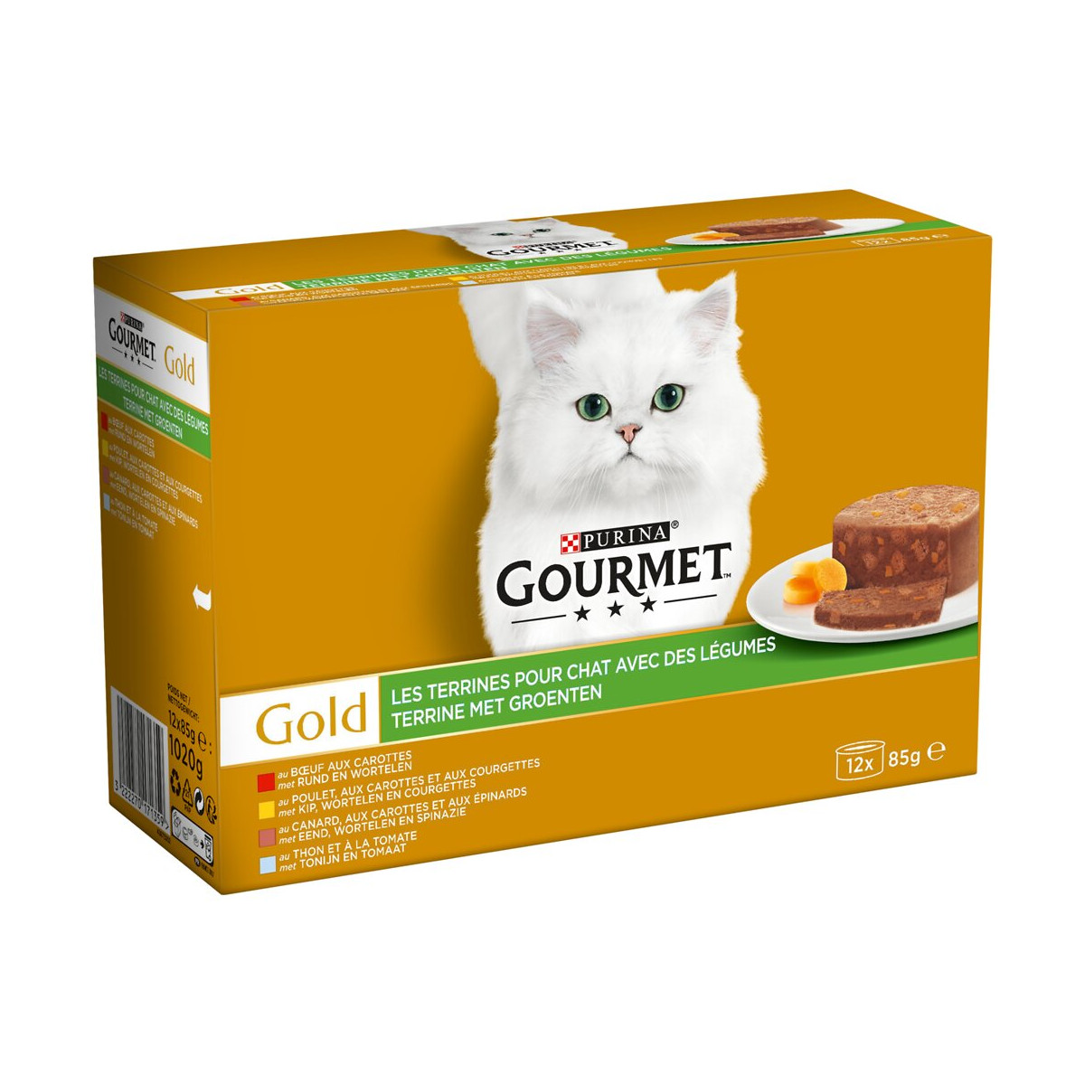 Boites GOURMET GOLD Les Terrines aux Légumes - 12 x 85 g - Boîtes pour chat adulte Sans arômes artificiels ajoutés, sans conservateurs artificiels ajoutés et sans colorants artificiels ajoutés.Spécifications techniques
