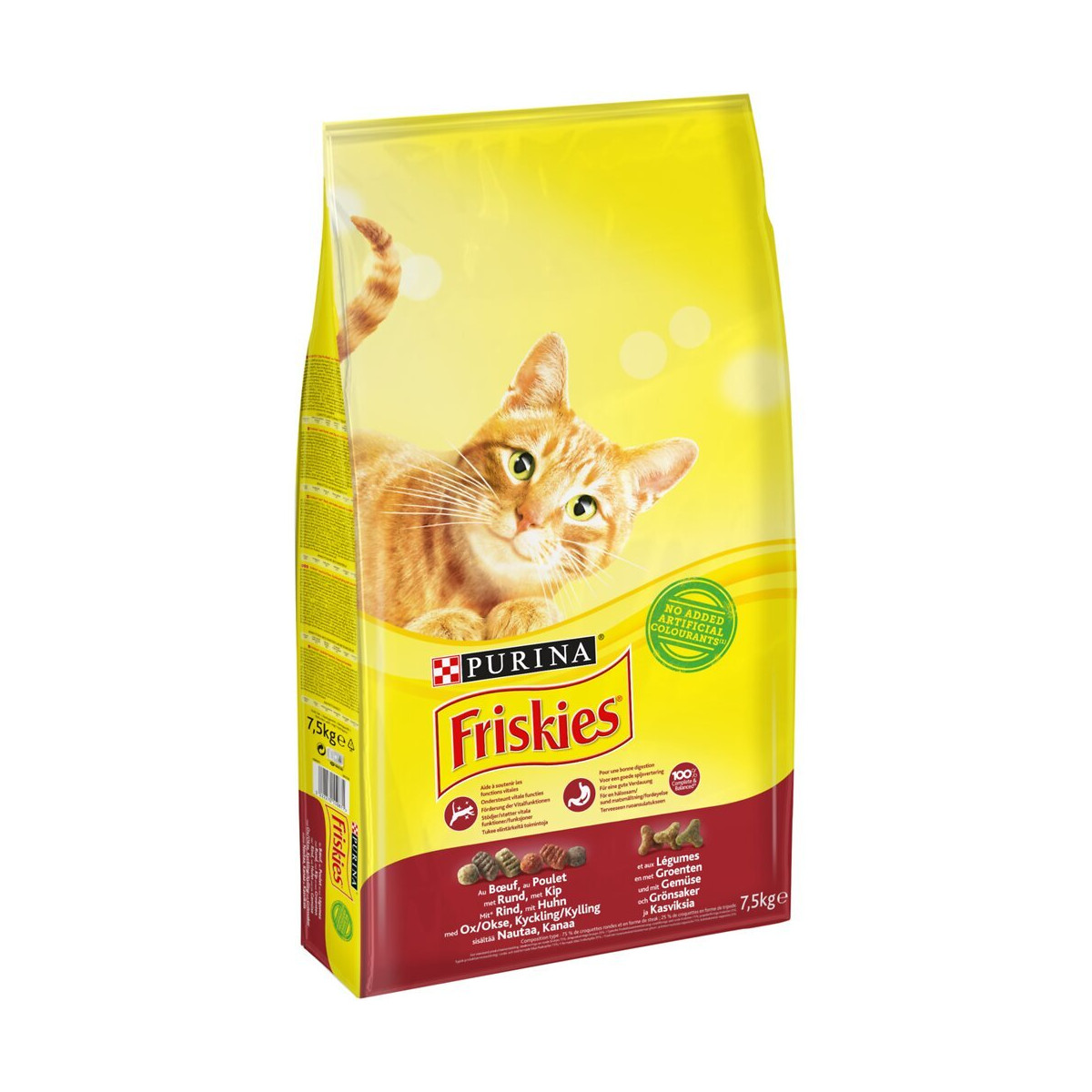 FRISKIES Au Bœuf, au Poulet et aux Légumes - 7,5 KG - Croquettes pour chat adulte Avec des fibres d’origine naturelle pour favoriser une bonne digestion Dents et os sains grâce aux minéraux essentiels et à la vitamine D.Spécifications techniques