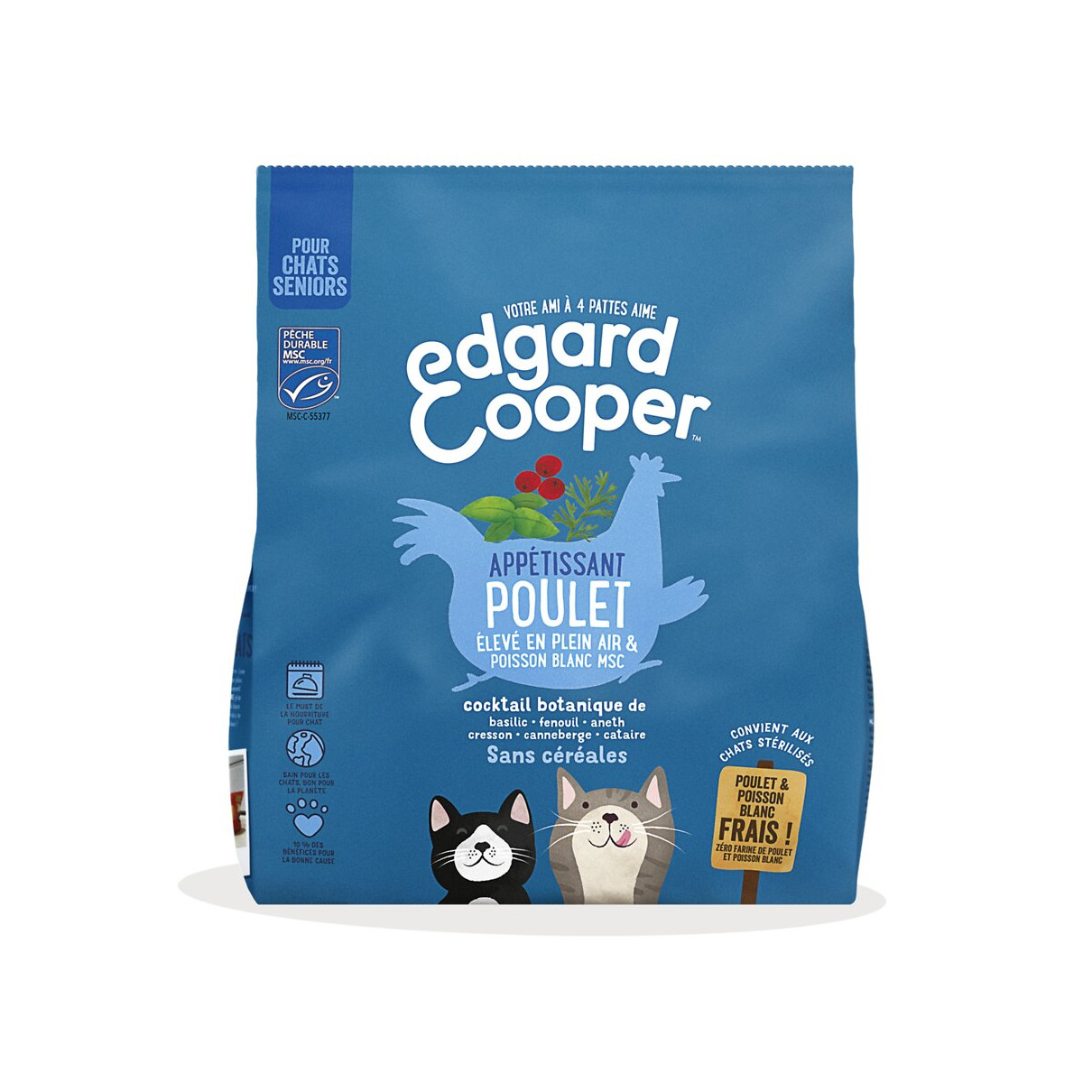 Une nourriture délicieuse et faible en calories cuisinée avec du poulet et du poisson blanc certifié MSC frais. Nous fabriquons cette recette en utilisant un max de poulet élevé en plein air de sources éthiques et du poisson blanc certifié MSC. Cela veut dire pas de farines de viande ou de poisson et rien d’artificiel, de transformé ou de séché. Nous associons ces ingrédients riches en protéines à un mélange sain et alléchant de baies, d’herbes et de végétaux. Nous cuisons lentement nos croquettes pour préserver leurs saveurs et leurs bienfaits naturels, et nous y ajoutons des prébiotiques, de l’huile de saumon et de lin pour améliorer leurs qualités nutritionnelles et faciliter la digestion. Cette recette contient également de la glucosamine et de la chondroïtine, bénéfiques pour la santé des articulations, et de la taurine, un nutriment essentiel pour les yeux et le cœur. Pour qui ? Cette recette est parfaite pour les chats âgés (ou les chats au régime). Le poulet et le poisson blanc sont riches en protéines et pauvres en calories, ce qui signifie qu'ils fournissent une alimentation adaptée aux chats moins énergiques. Les chats sont carnivores, c'est pourquoi toutes nos recettes sont faites avec au moins 60 % de viande ou de poisson. Cette recette ne contient pas de céréales et convient aux chats stérilisés. Convient aux chats seniors stérilisés ou actifs de toutes races. Points forts de la marque De la viande fraîche et des ingrédients naturels Sacs biodégradables d'origine végétale et boites recyclables 10% des bénéfices reversés à des associations Ethical Award Composition poulet frais 30 %, poisson blanc frais MSC 30 %, patates douces, pois, protéine de pois, sauce à base de poulet, graisse de poulet, graine de lin, minéraux, huile de saumon, manno-oligosaccharides (MOS), fructo-oligosaccharides (FOS), basilic 0,03 %, aneth 0,03 %, airelles 0,03 %, fenouil 0,03 %, cresson 0,03 %, cataire 0,03 %, glucosamine, sulfate de chondroïtineSpécifications techniques