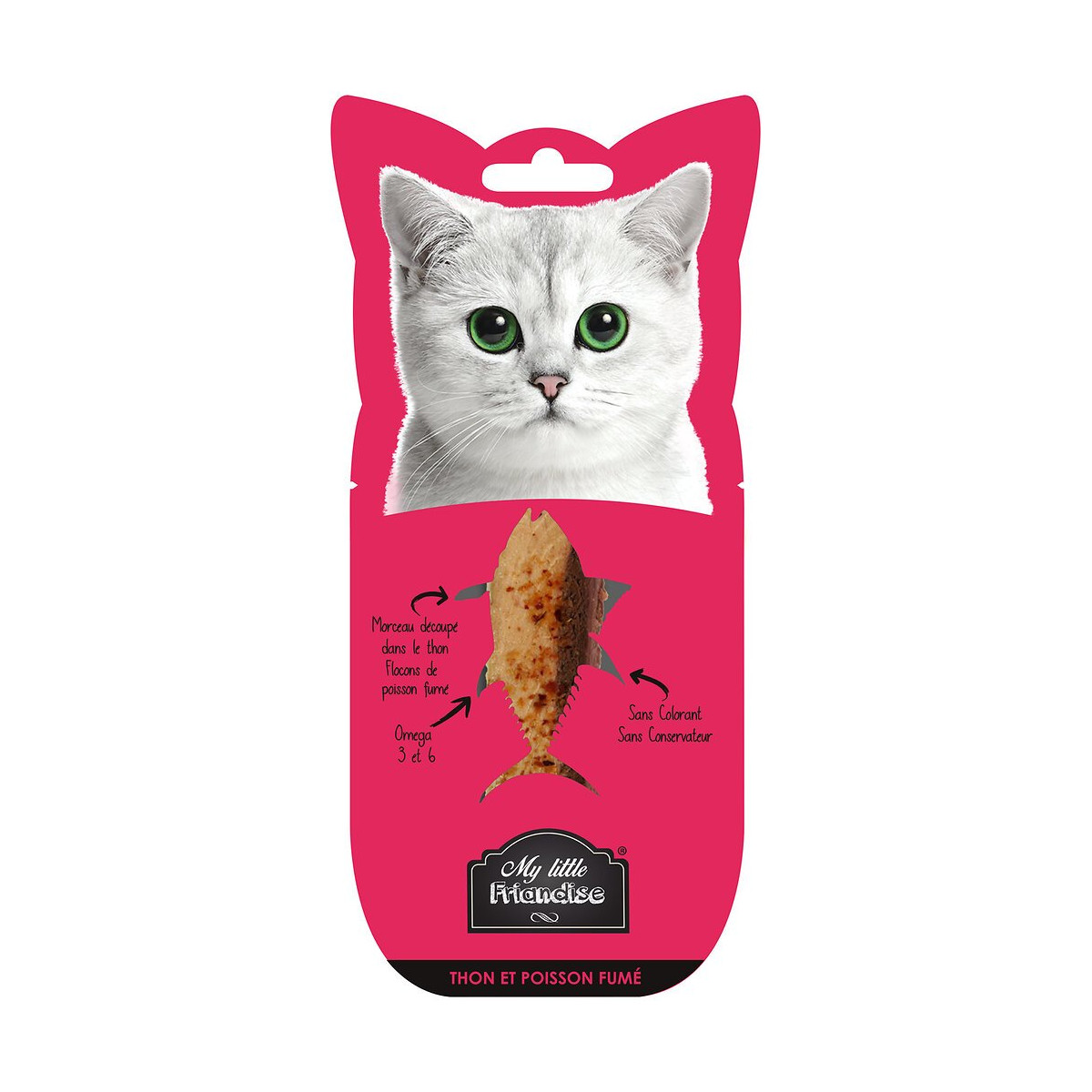 Aliment complémentaire pour chats Les friandises pour chat My Little Friandise sont développées par des passionnés des chats et créées à partir d’ingrédients minutieusement sélectionnés. Fabriquées à partir de thon, sans colorant et sans conservateur, nos friandises sont soigneusement cuisinées pour le plus grand plaisir des papilles de vos félins. My Little Friandise deviendra la friandise préférée de votre chat qui ne pourra pas y résister ! Mode d'emploi : Servir à température ambiante en complément des repas journaliers. Ne pas utiliser le micro-ondes. Conserver dans un endroit frais et sec. A consommer dans la journée une fois ouvert.Spécifications techniques