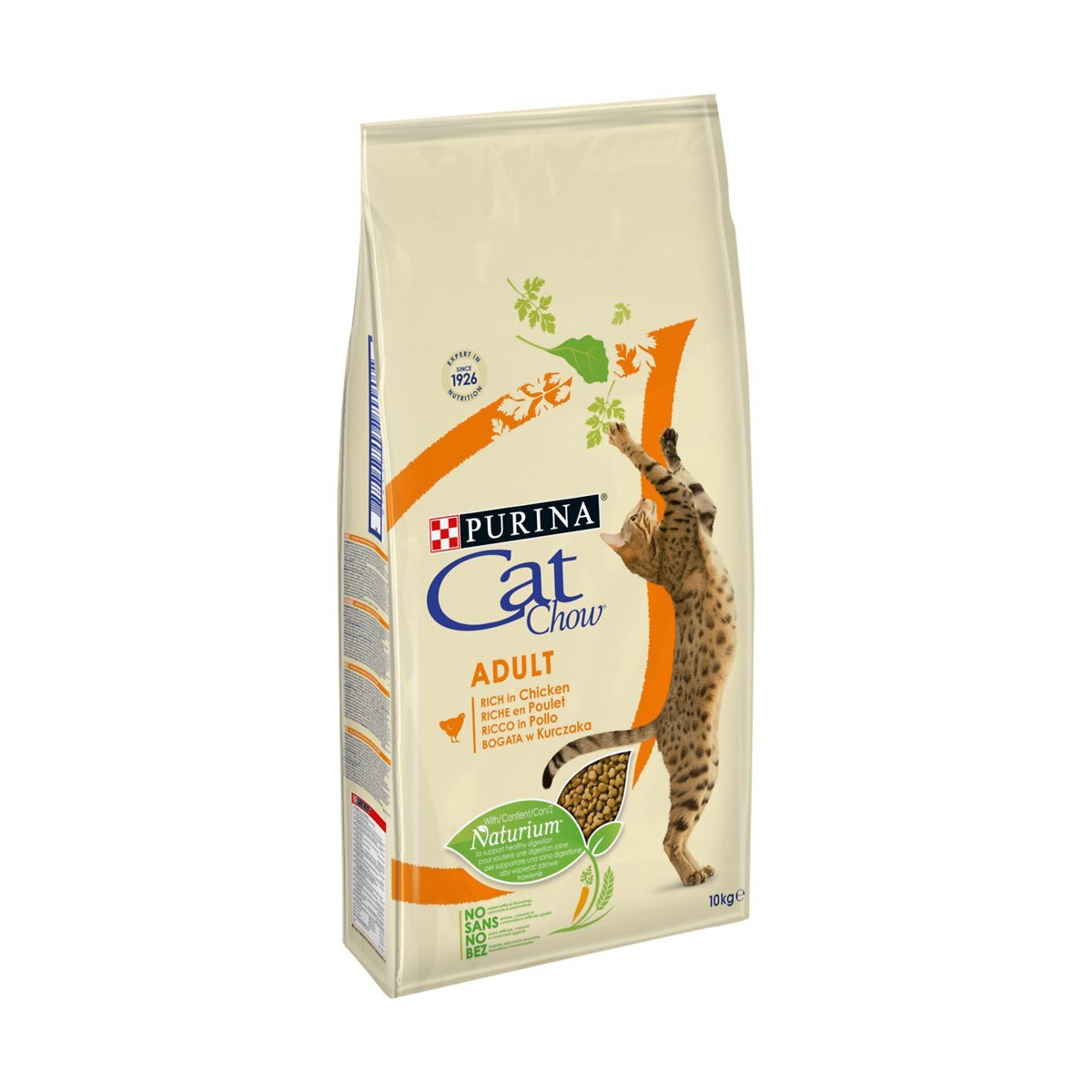 PURINA CAT CHOW Adult avec NaturiumTM - Riche en Poulet - 10 KG - Croquettes pour chat adulte Depuis 1926, les experts PURINA ont toujours cherché à mieux connaître les besoins naturels des animaux de compagnie, afin de contribuer à leur bonne santé et à leur bien-être, grâce à une nutrition complète. Notre recette est riche en Poulet et les sources de protéine sont soigneusement sélectionnées pour leur qualité afin de répondre aux besoins naturels des chats.Spécifications techniques