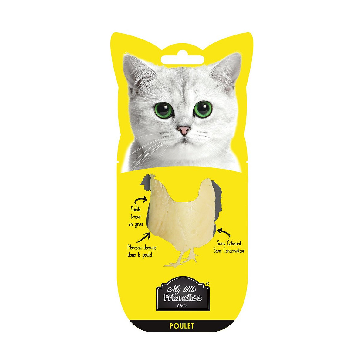 Aliment complémentaire pour chats. Les friandises pour chat My Little Friandise sont développées par des passionnés des chats et créées à partir d’ingrédients minutieusement sélectionnés. Fabriquées à partir de poulet désossé, sans colorant et sans conservateur, nos friandises My Little Friandise Poulet sont soigneusement cuisinées pour le plus grand plaisir des papilles de vos félins. My Little Friandise deviendra la friandise préférée de votre chat qui ne pourra pas y résister ! Mode d'emploi ,: Servir à température ambiante en complément des repas journaliers. Ne pas utiliser le micro-ondes. Conserver dans un endroit frais et sec. A consommer dans la journée une fois ouvert.Spécifications techniques