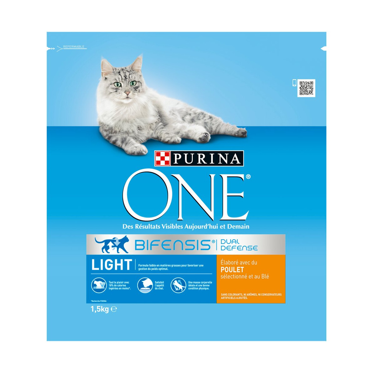 PURINA ONE Light - au Poulet et au Blé - 1,5kg - Croquettes pour chat adulte PURINA ONE Light est spécialement formulé pour aider votre chat à atteindre et à maintenir un poids optimal, tout en restant savoureux. Tout le plaisir avec 18% de calories ingérées en moins*. * Recherche PURINA.Spécifications techniques