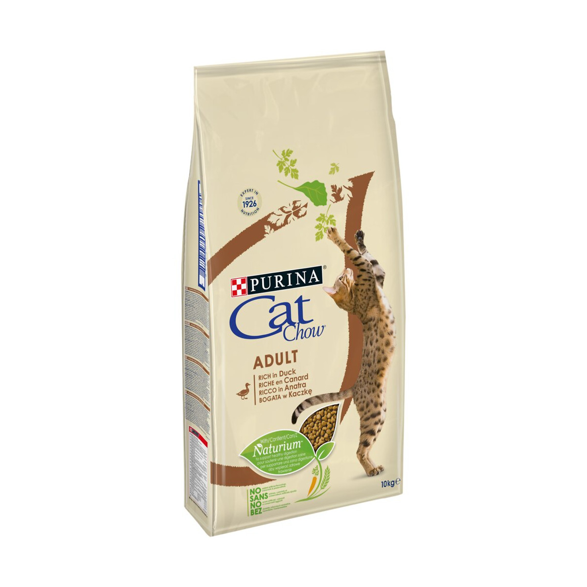 PURINA CAT CHOW Adult avec NaturiumTM - Riche en Canard - 10 KG - Croquettes pour chat adulte Depuis 1926, les experts PURINA ont toujours cherché à mieux connaître les besoins naturels des animaux de compagnie, afin de contribuer à leur bonne santé et à leur bien-être, grâce à une nutrition complète. Notre recette est riche en Canard et les sources de protéine sont soigneusement sélectionnées pour leur qualité afin de répondre aux besoins naturels des chats.Spécifications techniques