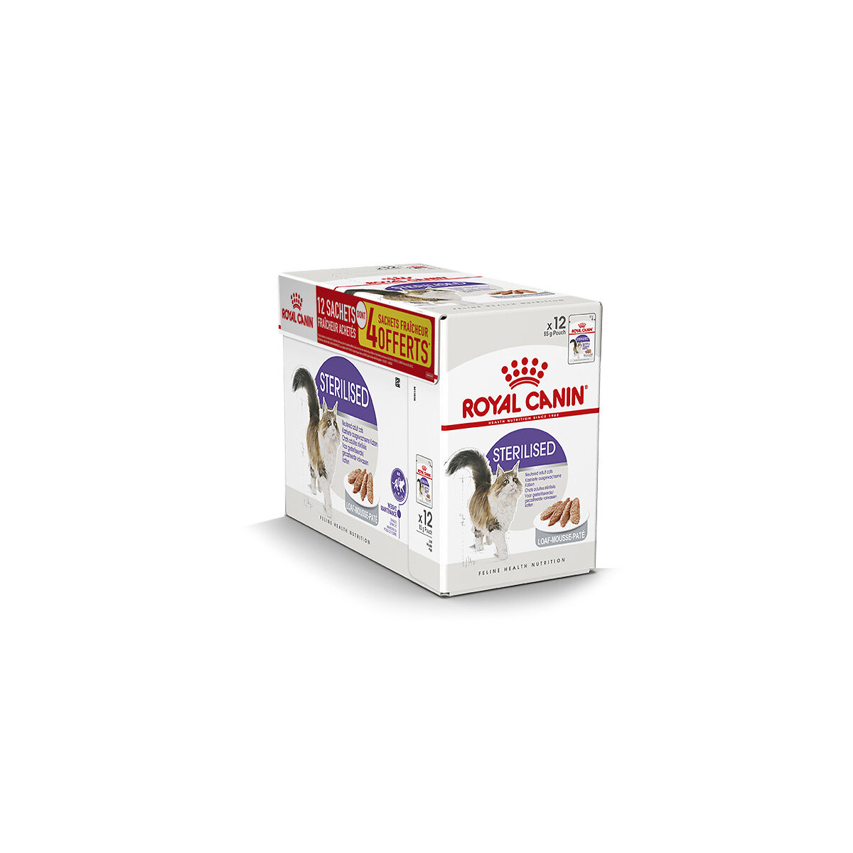 Aliment chat STERILISED MOUSSE 12x85g dont 4 gratuit