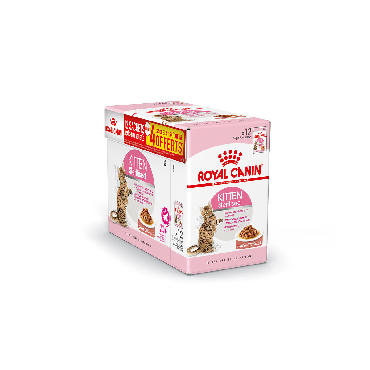 Aliment chat KITTEN STERILISED SAUCE 12x85g dont 4 gratuit