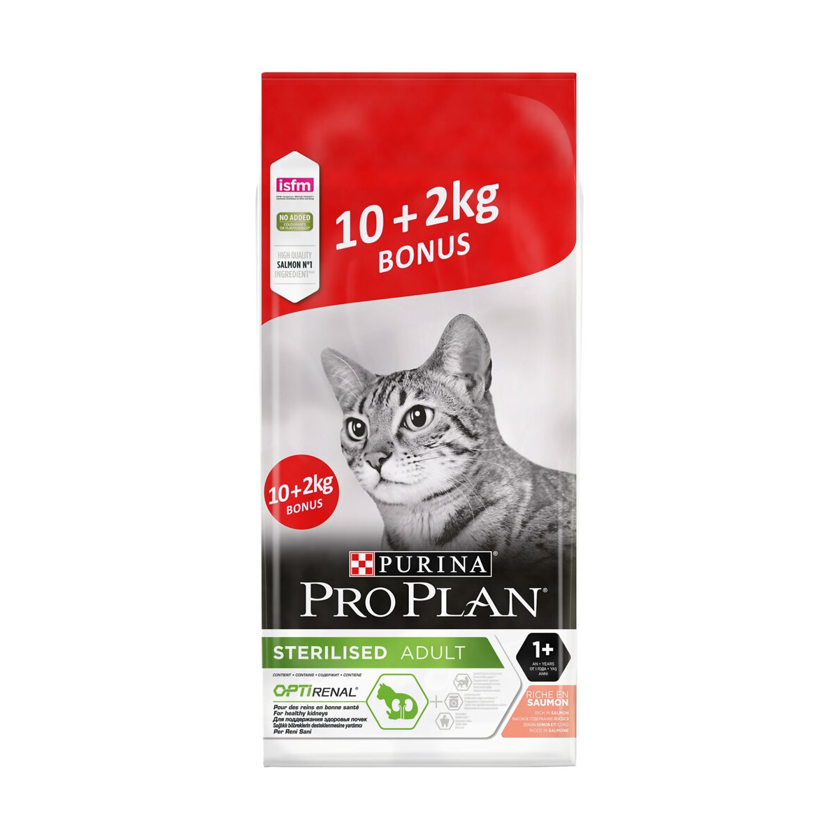 Croquettes PRO PLAN Sterilised - Riche en Saumon - 10 KG + 2KG gratuit - Croquettes pour chat adulte OPTIRENAL® est une combinaison scientifique d'ingrédients comprenant des acides aminés, des acides gras essentiels et des antioxydants. Maintient la santé des voies urinaires des chats castrés/stérilisés, plus exposés aux risques de maladie du bas appareil urinaire grâce à sa formule spécialement conçue pour limiter les risques de formation de calculs urinaires. Aide à maintenir un poids de forme grâce à un équilibre entre les protéines, carbohydrates et matières grasses. Teneur élevée en protéines (41%) et faible en matière grasse (12%).Spécifications techniques