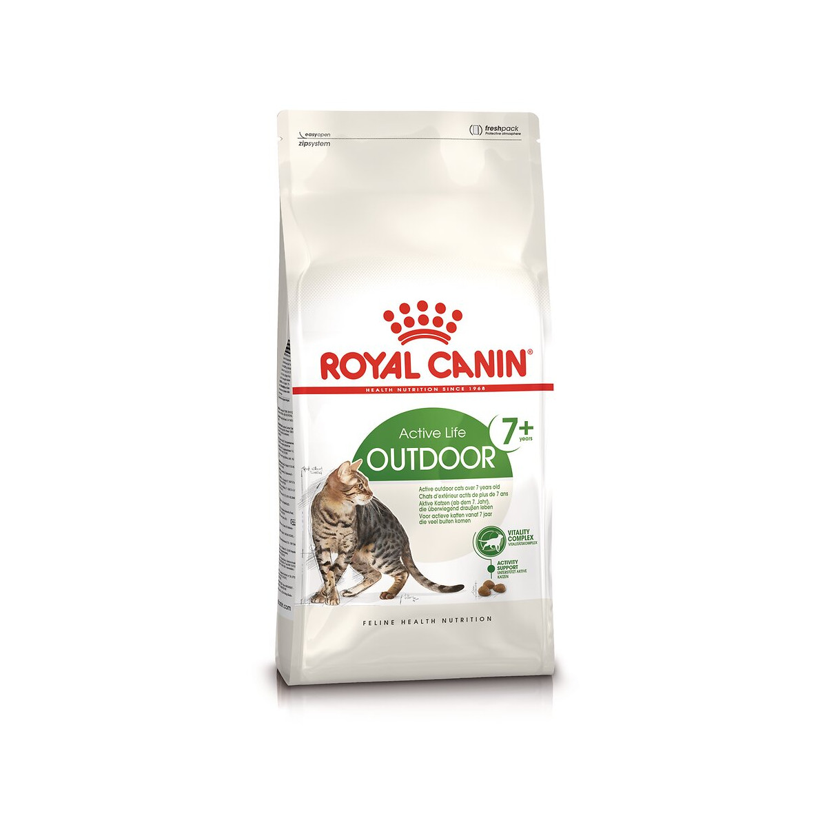 Chat d'extérieur de plus de 7 ans. Complexe vitalité. Apport énergétique adapté. Santé rénale. Santé urinaire.Spécifications techniques
