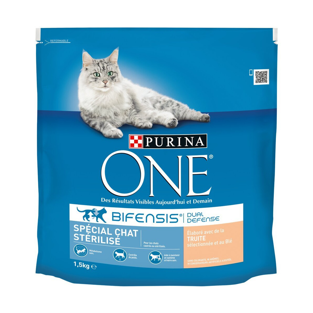 La stérilisation provoque des changements hormonaux qui peuvent avoir un impact sur le métabolisme, générer une prise de poids et des problèmes urinaires plus fréquents. PURINA ONE Spécial Chat Stérilisé est spécifiquement formulé avec un profil nutritionnel adapté aux chats castrés ou stérilisés. En effet, cette formule exclusive a été spécialement conçue avec des taux de protéine et de matières grasses adaptés pour aider à maintenir le métabolisme de votre chat stérilisé en bonne santé, à favoriser une masse musculaire idéale et à contrôler son poids. Grâce à un taux équilibré en minéraux, la formule aide aussi à maintenir un système urinaire sain. 1. Formulé pour aider à maintenir un métabolisme sain après la stérilisation/castration 2. Contrôle du poids grâce à un ratio protéine/matières grasses plus élevé (+15 % par rapport à la recette Adulte), en suivant les quantités journalières recommandées sur l'emballage.Spécifications techniques