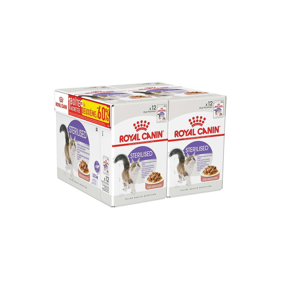 Aliment chat STERILISED SAUCE 12X85G 1+1 A-60%
