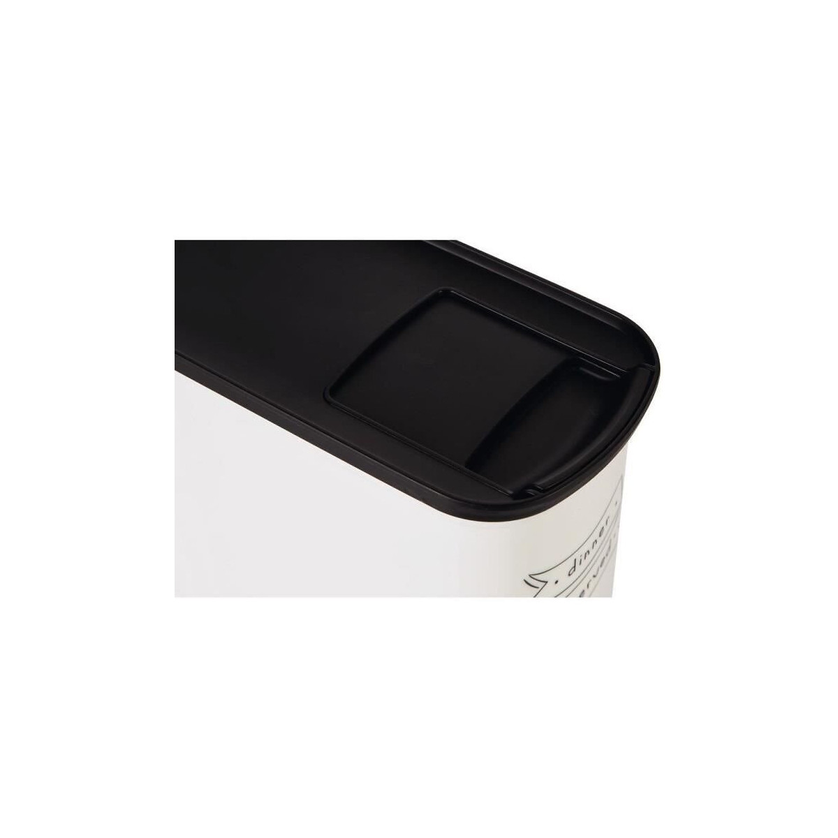 Conteneur de nourriture Le Diner est servi - 2,5 kg - 6 L - Blanc et noir - Pour chat - Pour stocker et conserver la nourriture de votre animal - Plastique - Poignée de préhension - Joint élastomere pour préserver la fraîcheur des aliments et éviter les odeurs - Double ouverture - Jauge pour mesurer le niveau - Godet inclus.Spécifications techniques