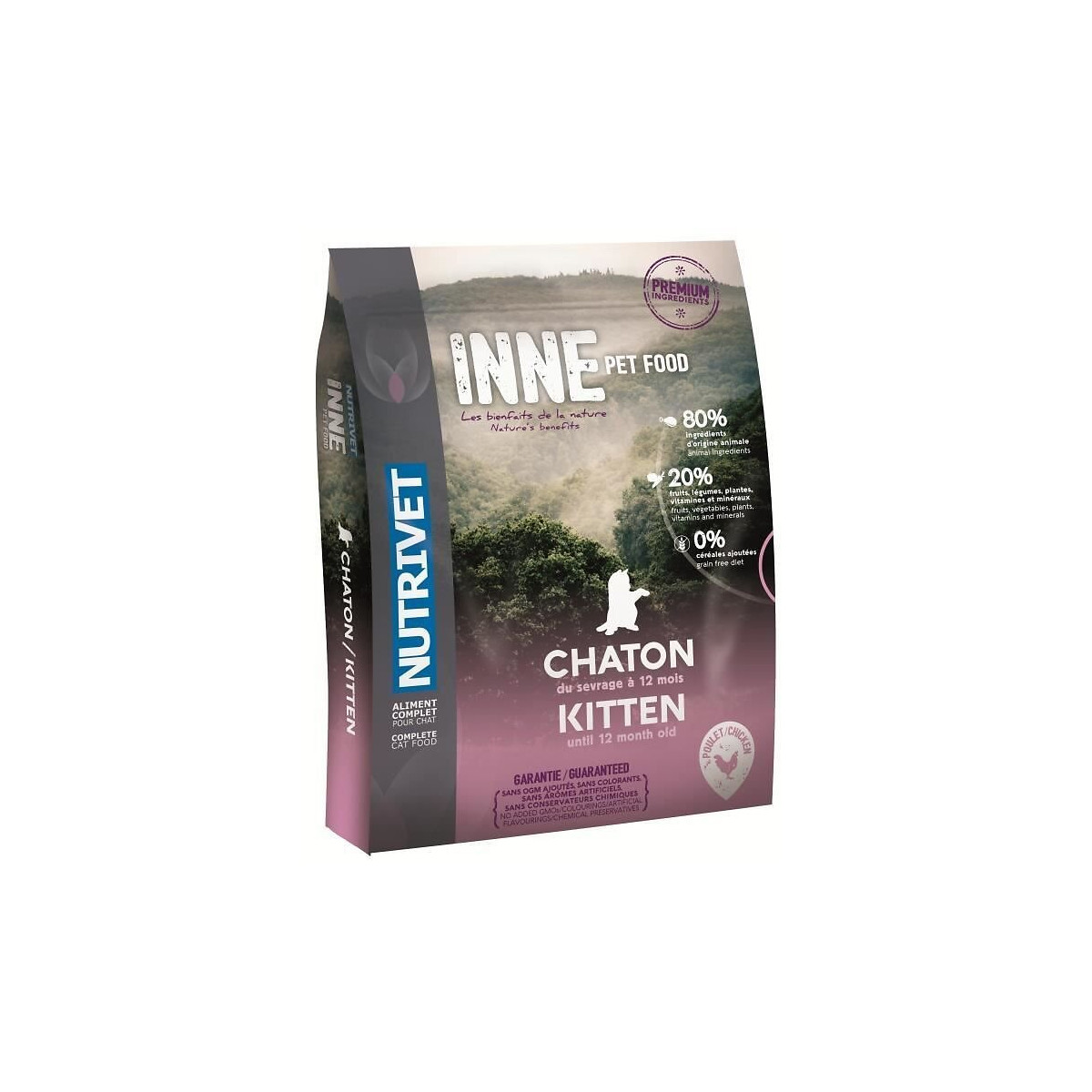 Aliment complet au poulet - C'est durant la phase de croissance qu'un chaton va préparer sa vie adulte - C'est la période où vont se développer ses organes, sa vue, ses muscles et son squelette - INNE PET FOOD chaton a été spécialement formulé pour lui amener tous les éléments nécessaires a une bonne croissance - 1,5 kg.Spécifications techniques