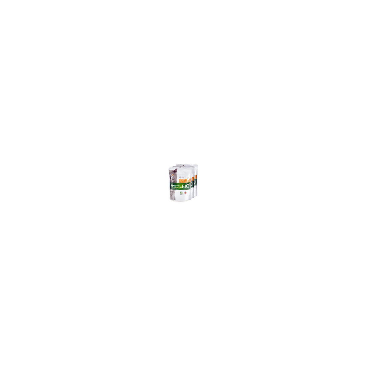 un Emincés Bio a la volaille,1 sachet de 100G pour chat Pratique à ranger et à conserver," Emincés " Biologiques à la volaille et aux légumes, Sachet fraicheur Emincés Bio a la volaille,1 sachet de 100G pour chat Pratique à ranger et à conserver," Emincés " Biologiques à la volaille et aux légumes, Sachet fraicheur Aliment pour chat Fabriqué en France Sans OGM et certifié bio AB FR-BIO-10 Elaboré par des Vétérinaires en Normandie Le logo AB vous offre la garantie d'acheter des produits sans OGM, sans conservateur. Votre chat va se régaler en mangeant une alimentation saine et bio. Liste des Ingrédients : Volaille : Volaille (4%),bœuf, porc, farine de blé, légumes (petits pois et carottes 4%), gluten de blé, chlorure de sodium ( ingrédients issus de l'agriculture biologique) Conseil d'utilisation : Servir à température ambiante Après ouverture, conserver au réfrigérateur ( +4°C) et consommer dans les 48h. Agrément sanitaire: FR 14 762 066 Certifié par FR-BIO-10. Photo non contractuelle, car il y a plusieurs vendeurs sur une même fiche produit.Spécifications techniques