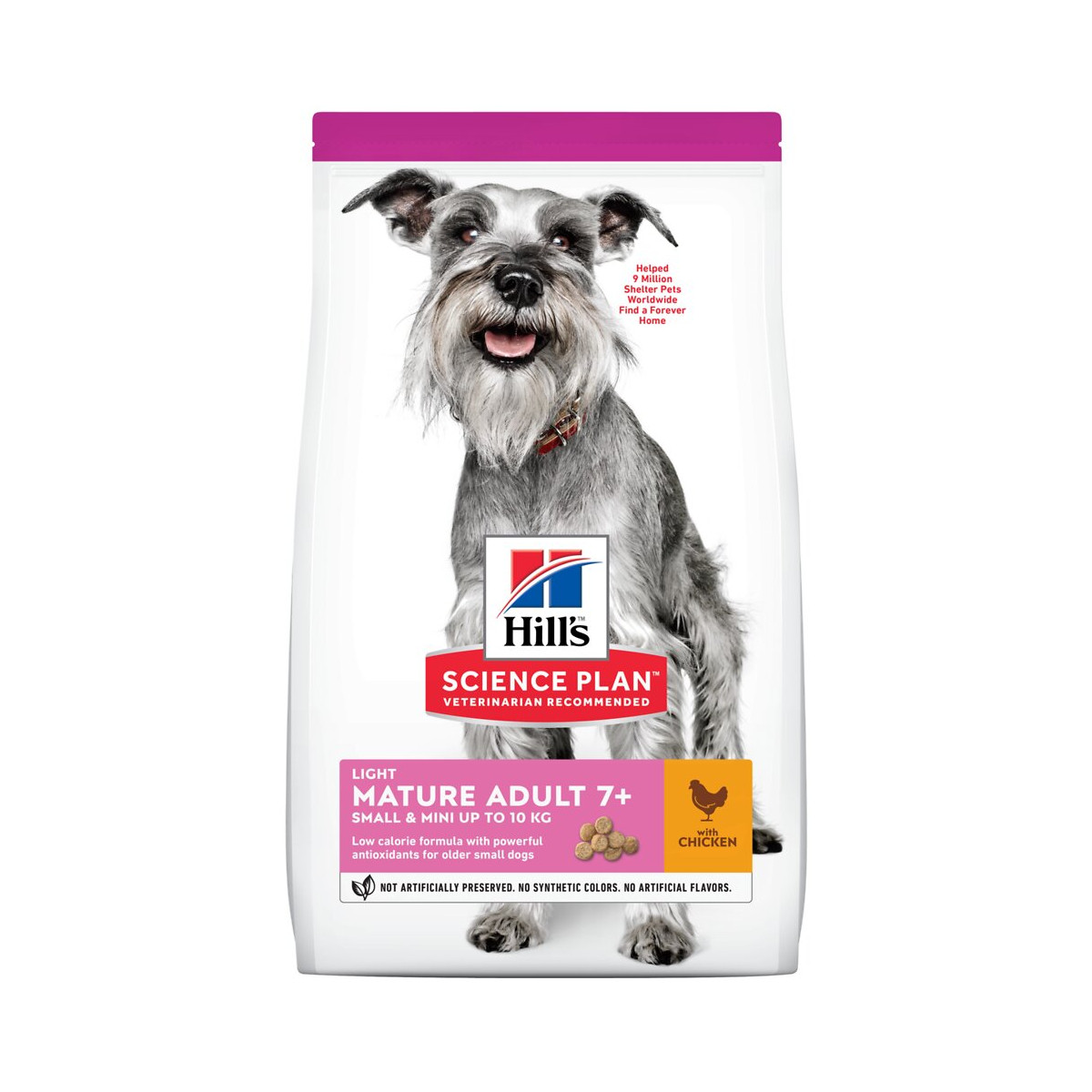 Votre petit chien âgé est en surpoids ou vous souhaitez simplement le maintenir à son poids idéal ? L'aliment pour chien HILL'S SCIENCE PLAN Mature Adult Light Small & Mini au poulet a été spécialement formulé pour répondre aux besoins des chiens âgés de petite race moins actifs ayant besoin d'un faible apport calorique. Elaboré à partir d'ingrédients de haute qualité, cet aliment premium fournit à votre chien un apport contrôlé en calories ainsi que de la L-Carnitine pour le maintien du poids idéal et de la fonction cardiaque. Sa teneur en fibres naturelles et en protéines de haute qualité aide votre chien à contrôler sa sensation de faim entre les repas, alors que l'apport en vitamine E et en acides gras oméga-6 favorise la bonne santé de sa peau et de son pelage. En plus, vous allez adorer le nouveau look des sacs Hill's Science Plan. Elaboré à partir d'ingrédients de haute qualité.Spécifications techniques