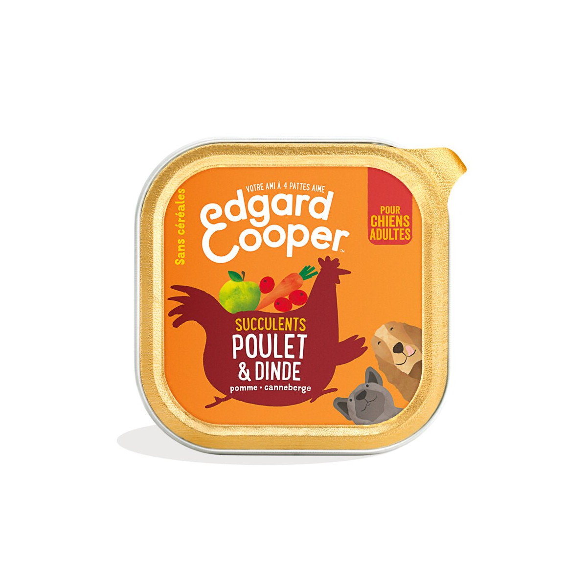 Riche en poulet et en dinde savoureux, cette recette sans céréales est bourrée de protéines de qualité supérieure qui vont aider votre chien à rester en pleine forme. Grâce à ses viandes maigres, cette recette est particulièrement adaptée aux chiens qui doivent faire attention à leur poids. De plus, nous combinons la viande avec des abats nobles (tels que le cœur et le foie) pour une dose de nutriments supplémentaire. Nos recettes incluent également un mélange super équilibré de fruits et de légumes, et des herbes et des végétaux qui boostent encore leur apport nutritionnel. Enfin, nous les cuisons en douceur pour préserver leurs saveurs et leurs bienfaits. Pour qui ? Presque tous les chiens trouvent le poulet et la dinde irrésistibles, c'est pourquoi cette recette est un excellent choix. Les protéines contenues dans cette nourriture étant si maigres, elle constitue une excellente source d'énergie hypocalorique pour les chiens qui surveillent leur poids. En prime, nous proposons de nombreux super aliments naturels pour donner à votre compagnon à quatre pattes un supplément de vitamines. Convient aux chiens adultes stérilisés ou actifs de toutes races. Points forts de la marque De la viande fraîche et des ingrédients naturels Emballage recyclable 10% des bénéfices reversés à des associations Ethical Award Composition poulet 30 %, dinde 26 %, minéraux, carottes 2 %, canneberges 1 %, tomates 1 %, potiron 1 %, pommes 1 %, persil 0,1 %, aneth 0,1 %.Spécifications techniques