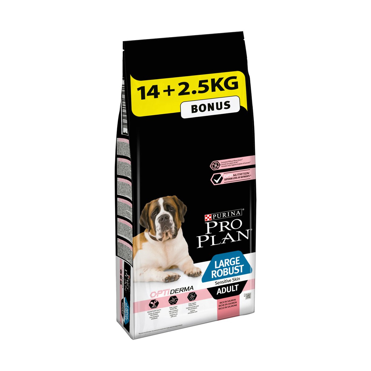 PRO PLAN Chien Large Adult Robust Sensitive Skin avec OPTIDERMA - Riche en Saumon – 14 + 2,5 KG - Croquettes pour chiens adultes de grande taille Cliniquement prouvé pour aider à maintenir une peau saine Soutient la bonne santé des articulations.Spécifications techniques