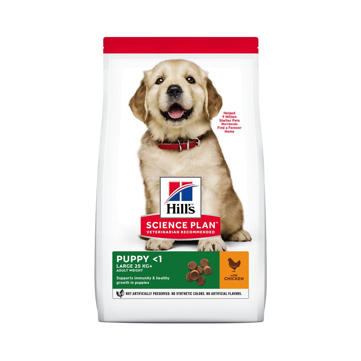 Les chiots de grande race ont besoin de beaucoup d'amour et pour bien grandir et s'épanouir pleinement, ils ont aussi besoin d'une alimentation adaptée. Spécialement conçu avec un niveau optimal de calcium, l'aliment HILL'S SCIENCE PLAN Puppy Large Breed assure à votre chiot une croissance osseuse contrôlée, un besoin unique de développement chez les chiots de grande race. Sa teneur équilibrée en minéraux favorise la solidité des os et des dents de votre chiot tandis que le DHA issu d'huile de poisson soutient le bon développement de ses yeux et de son cerveau. Elaboré à partir de protéines de haute qualité, cet aliment complet pour chiot favorise le développement de sa masse musculaire et le mélange d'antioxydants soutient et renforce son système immunitaire. En plus, vous allez adorer le nouveau look des sacs Science Plan. Elaboré à partir d'ingrédients de haute qualité. Protéines de haute qualité pour le développement et le maintien de la masse musculaire. Soutient le système immunitaire et une croissance saine chez les chiots de grande race. Teneur équilibrée en minéraux pour favoriser la solidité des os et des dents chez les chiots de grande race.Spécifications techniques