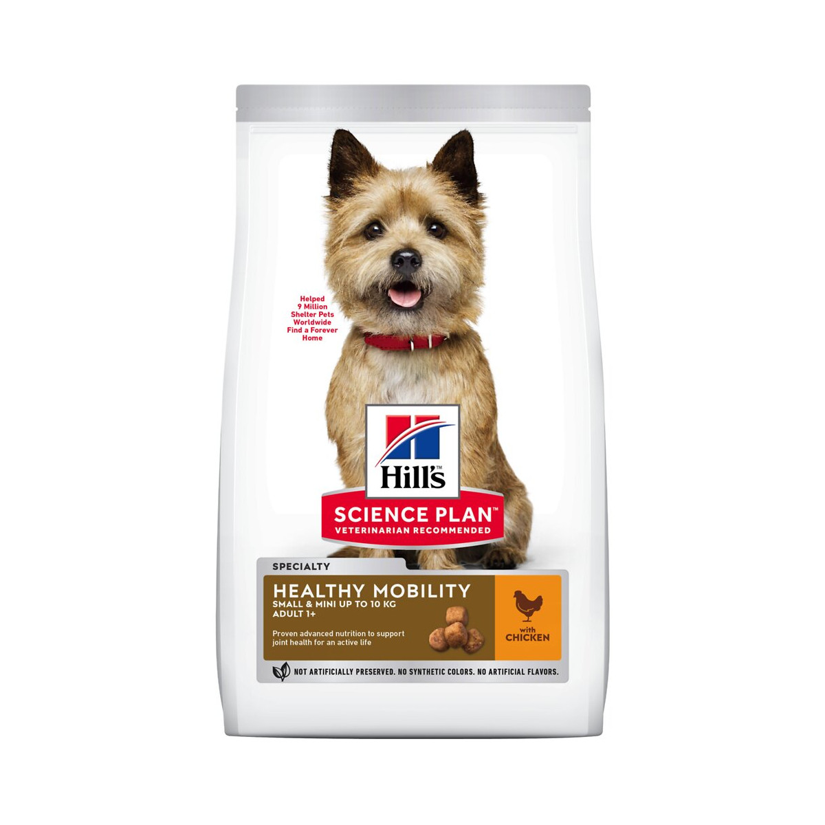 L'aliment pour chien HILL'S SCIENCE PLAN Healthy Mobility Small & Mini au poulet fournit à votre petit chien adulte une nutrition de pointe éprouvée qui favorise la santé de ses articulations et améliore sa mobilité, pour une vie active. Sa formule parfaitement équilibrée contient de l'EPA issu d'huile de poisson qui favorise la souplesse de ses articulations et aide à garder le cartilage en bonne santé. Cet aliment complet pour chien de petite race contient de plus de la glucosamine & de la chondroïtine, des constituants essentiels d'un cartilage sain. En plus, vous allez adorer le nouveau look des sacs Hill's Science Plan. Recommandé par les vétérinaires. Formulé avec des ingrédients de haute qualité. EPA issu d'huile de poisson qui aide à garder le cartilage des articulations en bonne santé. Aliment pour chien contenant glucosamine & chondroïtine, des éléments constitutifs d'un cartilage sain.Spécifications techniques