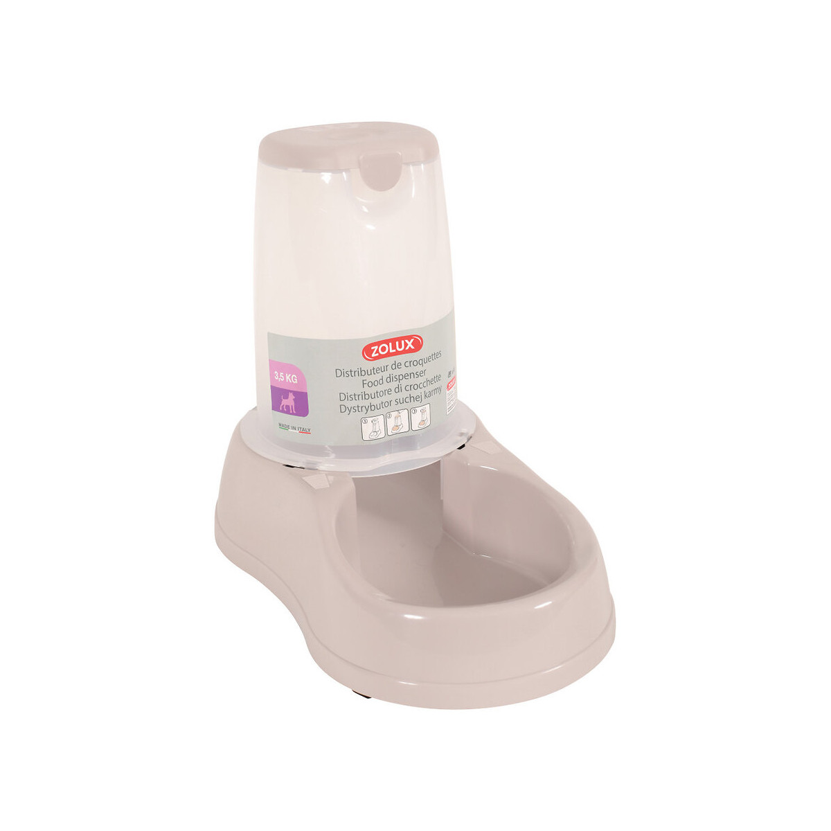 Ce distributeur permet doffrir au chien plusieurs rations de croquettes. Le niveau visible grâce au bac de réserve transparent diminue au fur et à mesure de la consommation. Antidérapant, il offre au chien le luxe de manger sans renverser le contenu sur le sol. Facile à nettoyer, il s'entretient quotidiennement. Pour tous types de chiens. Contenance 1,5kg.