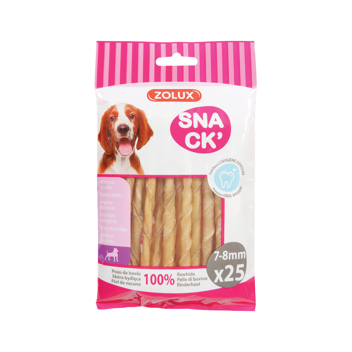 Friandises composées à 100% de peau de bovin. Contribue à l’hygiène dentaire effet de mastication. Conditionnement : 7/8 mm x25. Composition analytique : Protéine Brute 80%, Matière grasse 1.25%, Cendre brute 11.6%, cellulose 3%, Glucide 0.15%Spécifications techniques