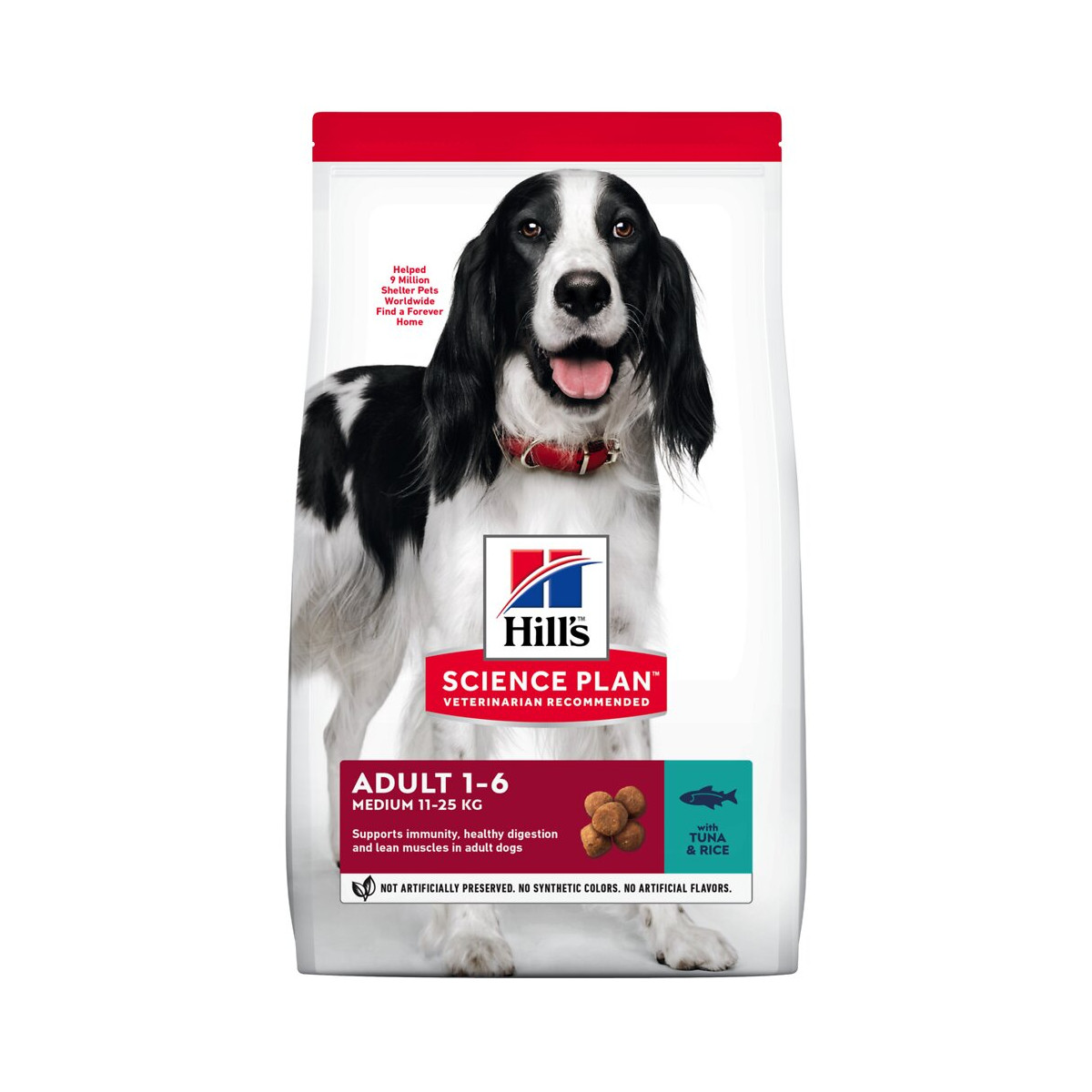 Votre chien adulte est dans la fleur de l'âge, il a besoin d'une alimentation adaptée. L'aliment HILL'S SCIENCE PLAN Adult au thon et au riz est spécialement formulé pour fournir aux chiens adultes âgés de 1 à 6 ans toute l'énergie dont ils ont besoin. Cet aliment premium contient des protéines de haute qualité pour la masse musculaire, des fibres naturelles pour une digestion saine et des oméga-6 pour un pelage brillant. Il offre le juste équilibre en nutriments pour aider votre chien à mener une vie longue, heureuse et en pleine santé à vos côtés. En plus, vous allez adorer le nouveau look des sacs Science Plan. Elaboré à partir d'ingrédients de haute qualité. Favorise une digestion saine pour votre chien adulte grâce à des fibres naturelles. Fournit à votre chien adulte des protéines de haute qualité pour le maintien de la masse musculaire maigre. Avec des oméga-6 et de la vitamine E pour une belle peau et un pelage brillant.Spécifications techniques