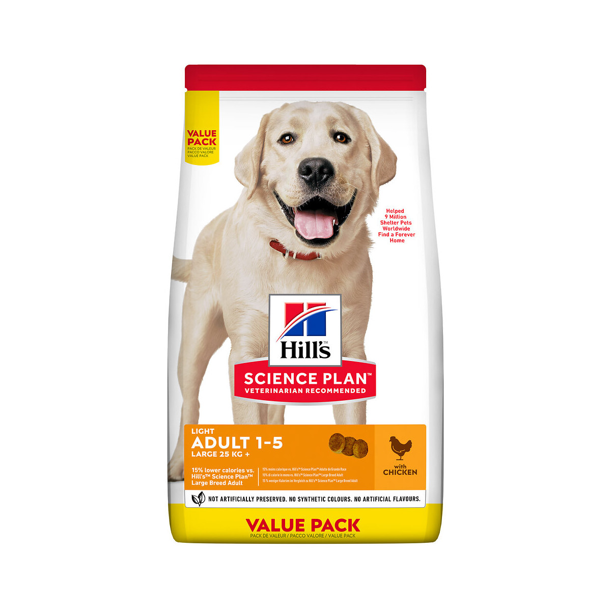 Votre chien âgé est en surpoids ou vous souhaitez simplement le maintenir à son poids idéal ? L'aliment pour chien HILL'S SCIENCE PLAN Mature Adult Light au poulet a été spécialement formulé pour répondre aux besoins des chiens matures moins actifs ayant besoin d'un faible apport calorique. Elaboré à partir d'ingrédients de haute qualité, cet aliment premium fournit à votre chien un apport contrôlé en calories ainsi que de la L-Carnitine pour le maintien du poids idéal et de la fonction cardiaque. Sa teneur en fibres naturelles et en protéines de haute qualité aide votre chien à contrôler sa sensation de faim entre les repas, alors que l'apport en vitamine E et en acides gras oméga-6 favorise la bonne santé de sa peau et de son pelage. En plus, vous allez adorer le nouveau look des sacs Hill's Science Plan.Spécifications techniques