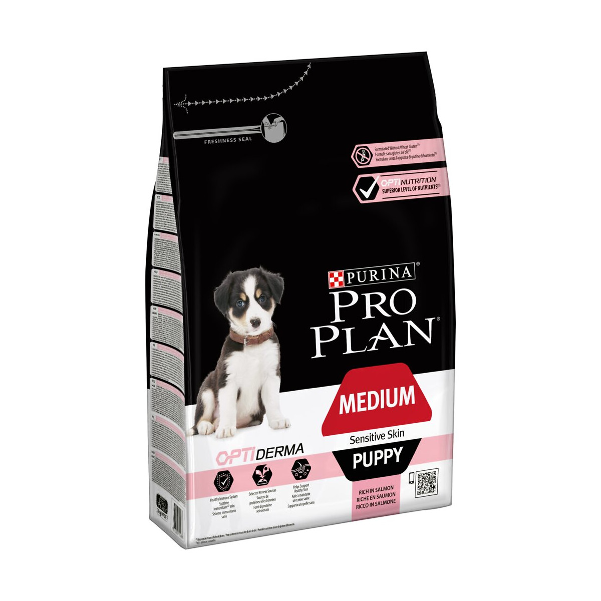 Croquettes au saumon Pro Plan Sensitive Skin Medium Puppy pour chiot. Développé par nos vétérinaires et nutritionnistes, Pro Plan OPTIDERMA, fournit une nutrition adaptée qui aide à soutenir la peau sensible des chiots. La formule OPTIDERMA contient une combinaison spécifique de nutriments cliniquement prouvée pour aider à maintenir une peau saine et un beau pelage, ainsi que des sources de protéines sélectionnées pour aider à réduire les réactions cutanées associées à des sensibilités alimentaires. Aliment complet pour chiots, pour le maintien d'un système immunitaire sain. Cliniquement prouvé pour aider à maintenir une peau saine, ces croquettes sont une source de protéines sélectionnées pour les chiens sensibles. Une combinaison de nutriments essentiels, et des protéines de saumon de haute qualité, pour aider à soutenir la bonne santé des articulations. Contenance : 3 kg. Sources de protéines sélectionnées pour les chiens sensibles Cliniquement prouvé pour aider à maintenir une peau saine.Spécifications techniques